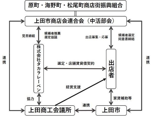 当ショップは、新規事業の立ち上げを支援し、事業者の育成に貢献するインキュベーション・ショップと定めております。また、海野町商店街の一角に位置する当店舗を、上田市中心市街地活性化のひとつの拠点として位置付けており、上田市・上田商工会議所・上田市商店会連合会と連携・協力体制を構築し、進行してまいります。
