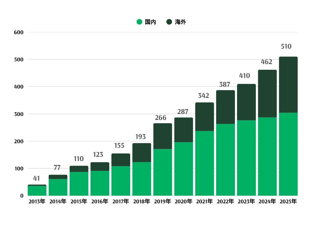 これらの出店を含め、2025年11月末にはグループ全体で510店舗に達する見込みです。