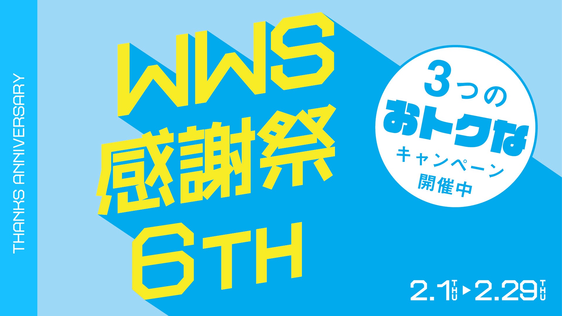 WWSは、2024年3月で発売6周年を迎えます。日頃のご愛顧に感謝を込めて、2024年2月1日(木)~2024年2月29日(木)の間、WWS公式オンラインストアとWWS公式ストア3店舗にて、「WWS感謝祭」を実施いたします。