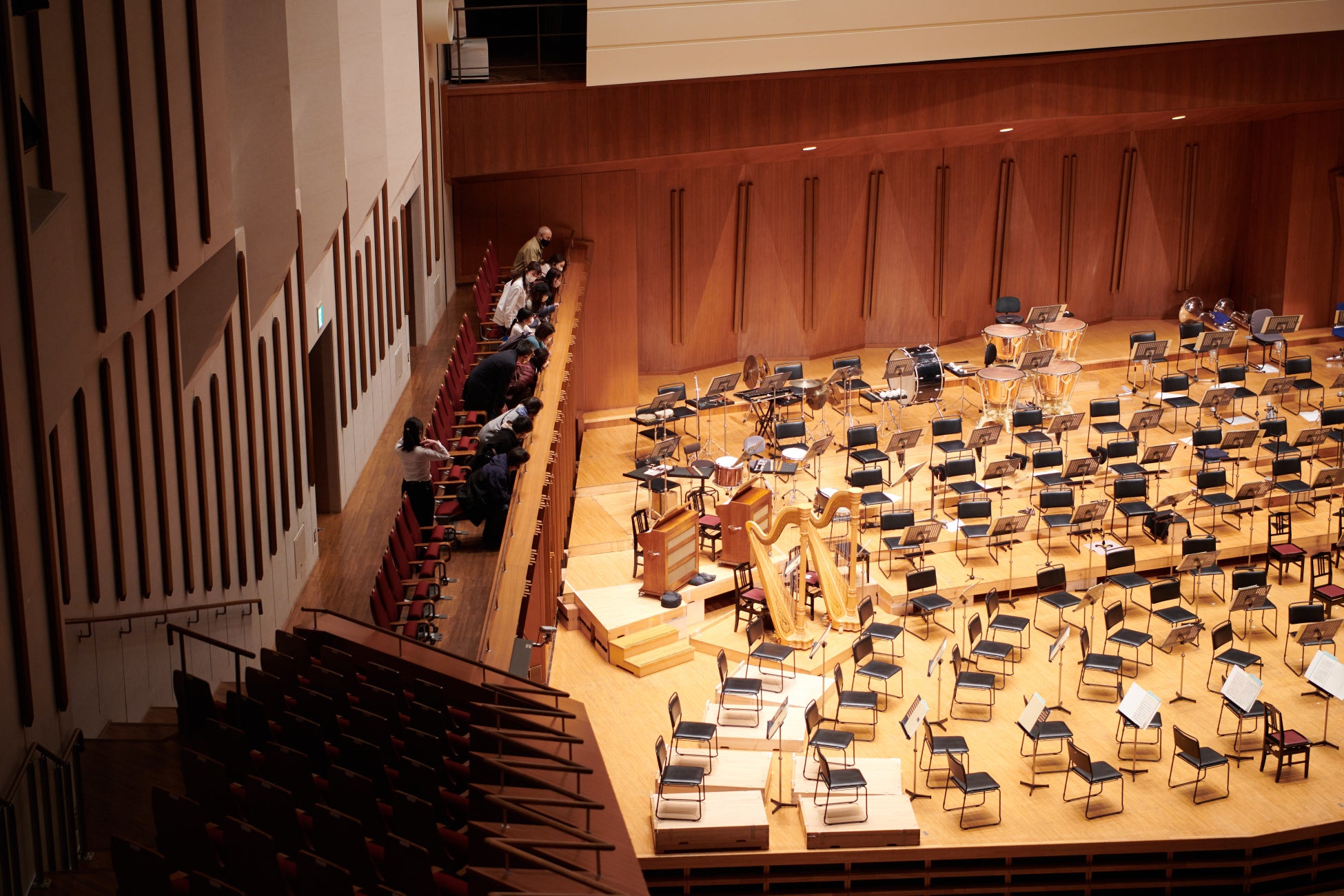 3月のツアーは2回開催。オーケストラのリハーサル後のコンサートホールを中心にご案内いたします。本番を翌日に控えて緊張感と熱気の残るホール内を巡ります。