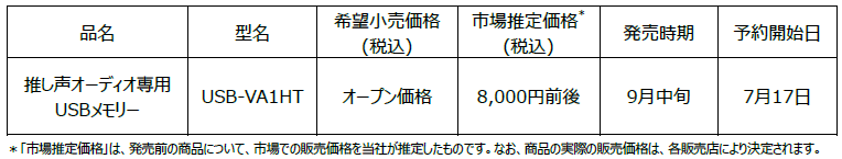 推し声オーディオ専用USBメモリー「USB-VA1HT」(畠中祐Ver.)を発売