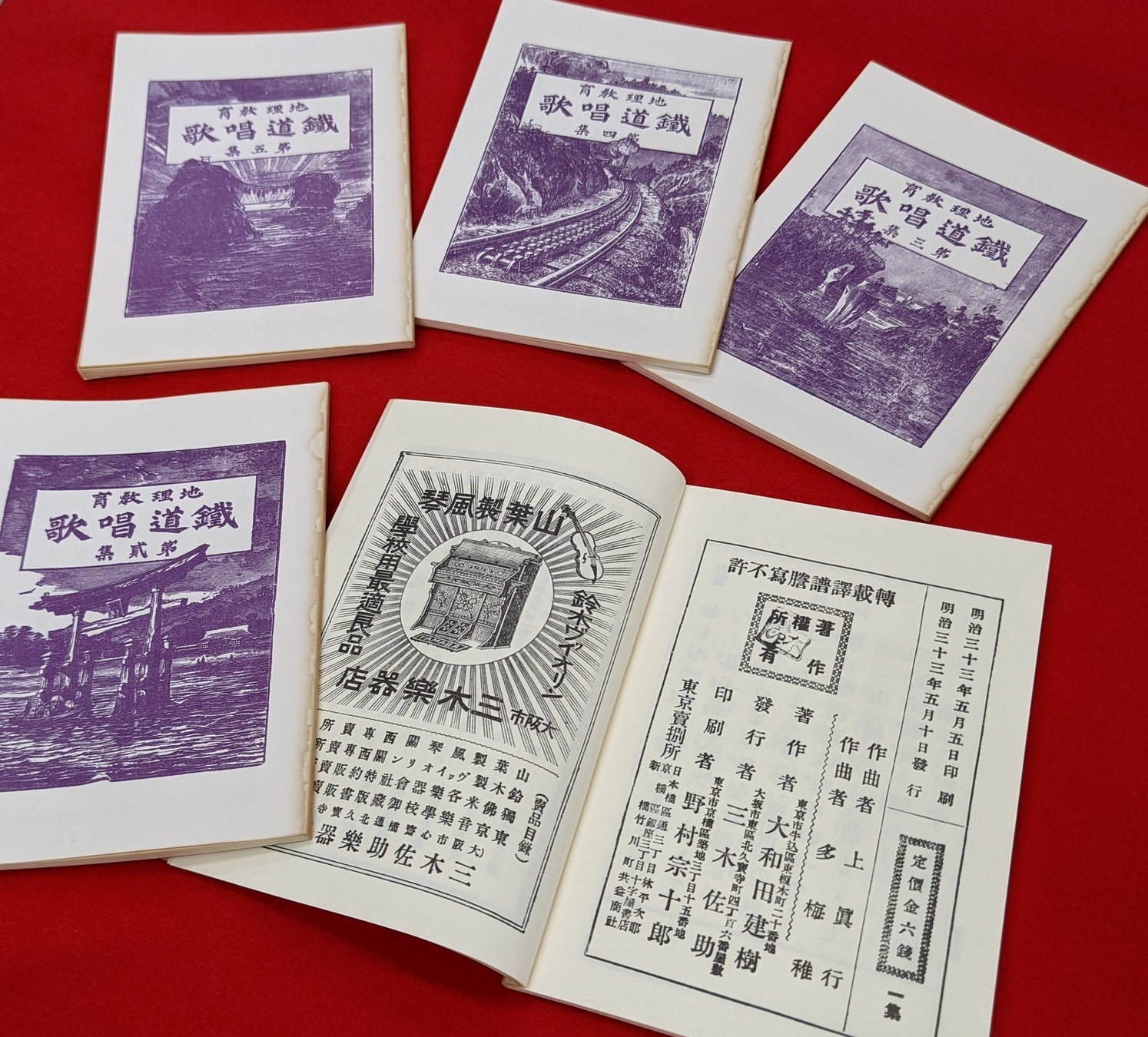 明治5年(1872年)新橋~横浜間で鉄道が開業してから約30年後の明治33年(1900年)に発売された『鉄道唱歌』は、親しみやすいメロディーと地名を織り込んだ旅情を誘う歌詞が評判となり、次々と続編が発表され、大正初期までの20年余りで、累計2,000万部を売り上げました。