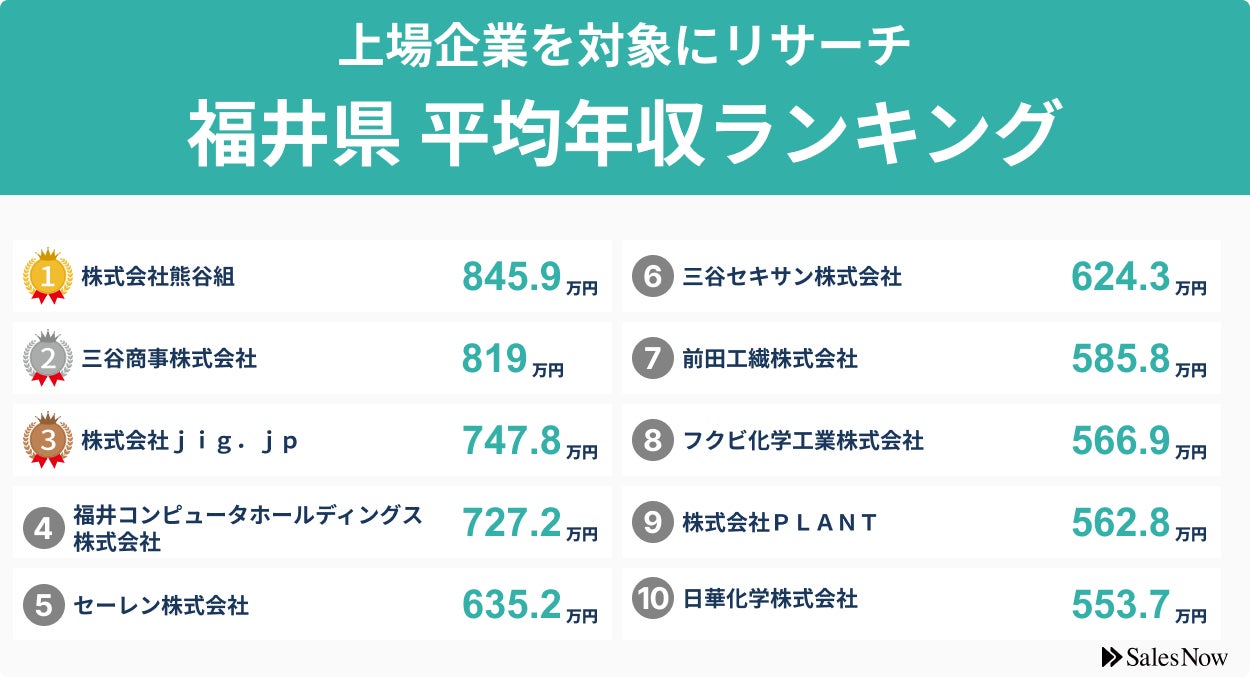 【福井県】上場企業平均年収ランキングTOP10!/SalesNow DBレポート