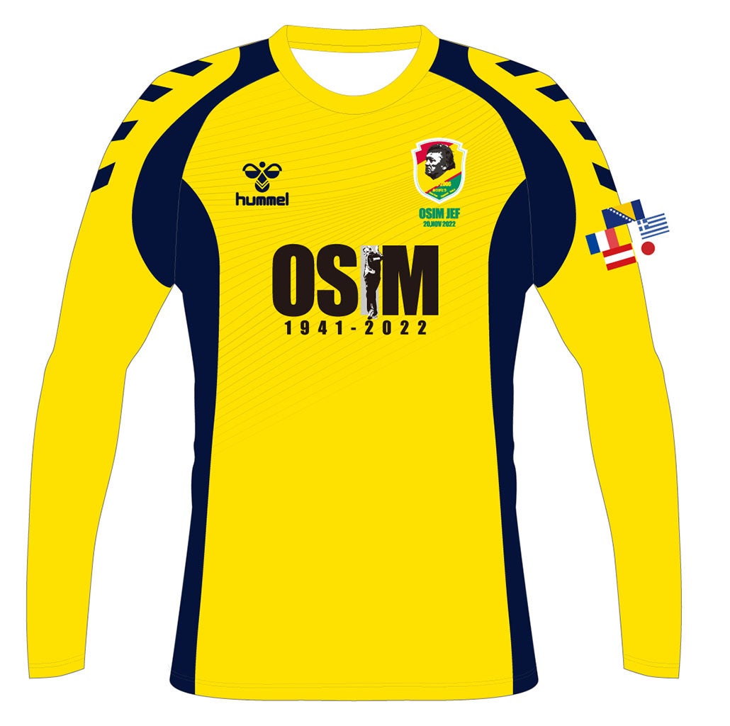 11月20日にフクダ電子アリーナで行われる試合で、ヒュンメルはオシムジェフ、オシムジャパンのユニフォームを担当。当時のカラーやデザイン、ジェフフォントをベースにしながら、イビチャ・オシム元監督をしのんだロゴやエンブレム、左袖にはオシム元監督がサッカーで関わった国の国旗を配置。背面襟下には、「HVALA SVABO」(ありがとう、ドイツ野郎)とプリント。父方の祖父母がドイツ系だったことから、シュワーボ(ドイツ野郎)という愛称で親しまれたオシム元監督への感謝を込めた言葉を刻みました。
