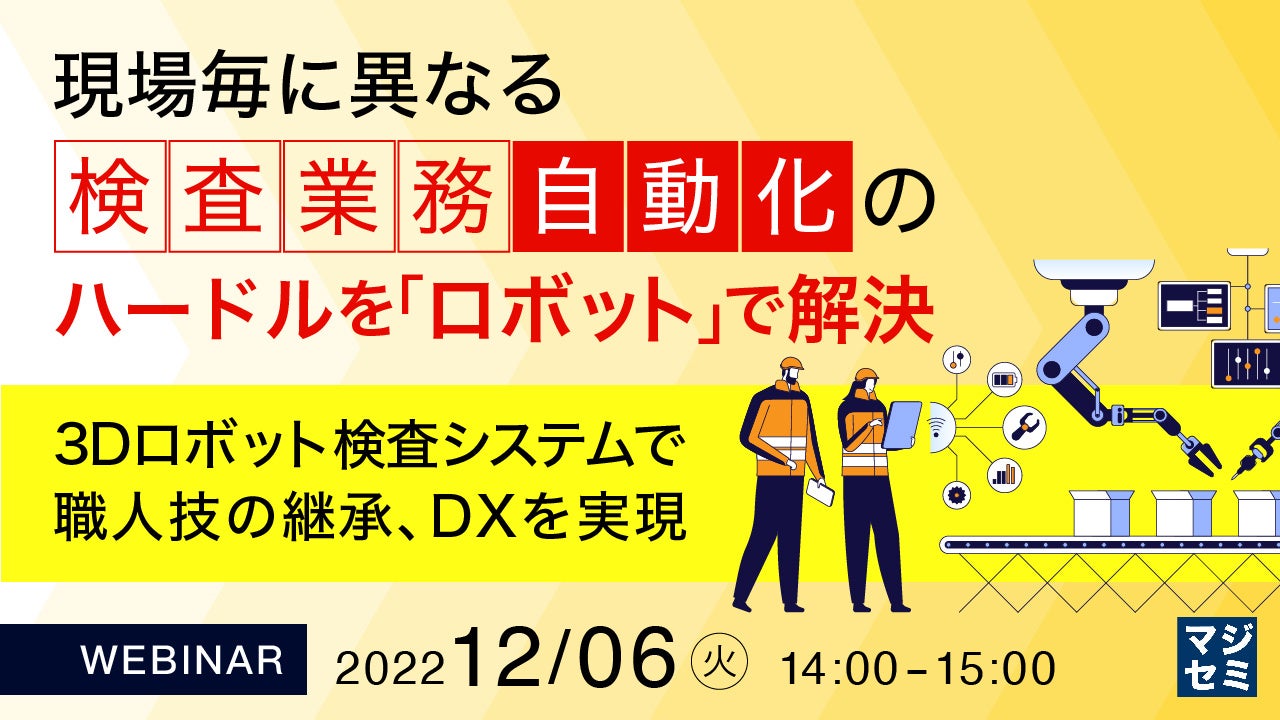 マジセミ株式会社は「3Dロボット検査システムで職人技を継承」というテーマのウェビナーを開催します。