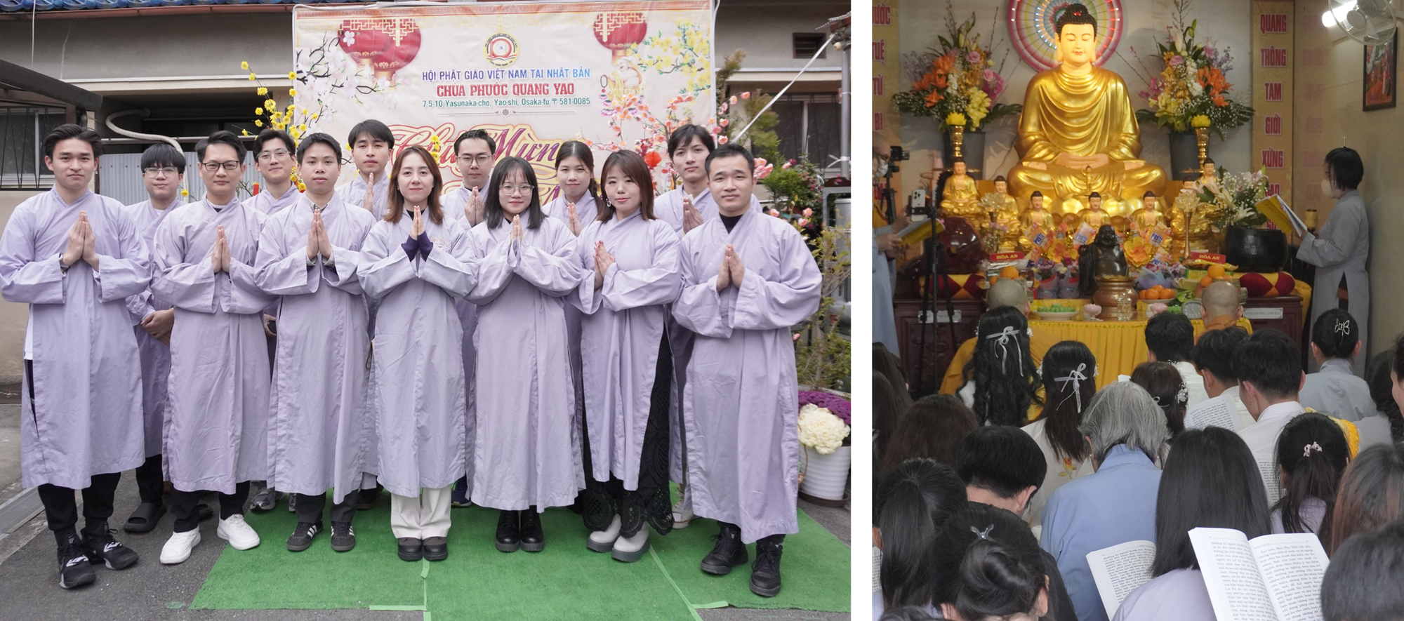 2026年2月15日(日)、関西圏在住の当社ベトナムエンジニア19名とそのご家族、当社グローバル事業推進部のメンバー2名、総勢24名が、大阪府八尾市にあるベトナムのお寺 フォック・クアン八尾寺院(Chùa Phước Quang Yao)に出向き、テトを祝う行事に参加しました。テトは、家族や仲間が一堂に会し、祖先への感謝と新年の平安・幸福を祈る、ベトナムで最も大切にされている年中行事です。日本のお正月と同様に、新しい一年を清らかな気持ちで迎える節目の日とされています。
