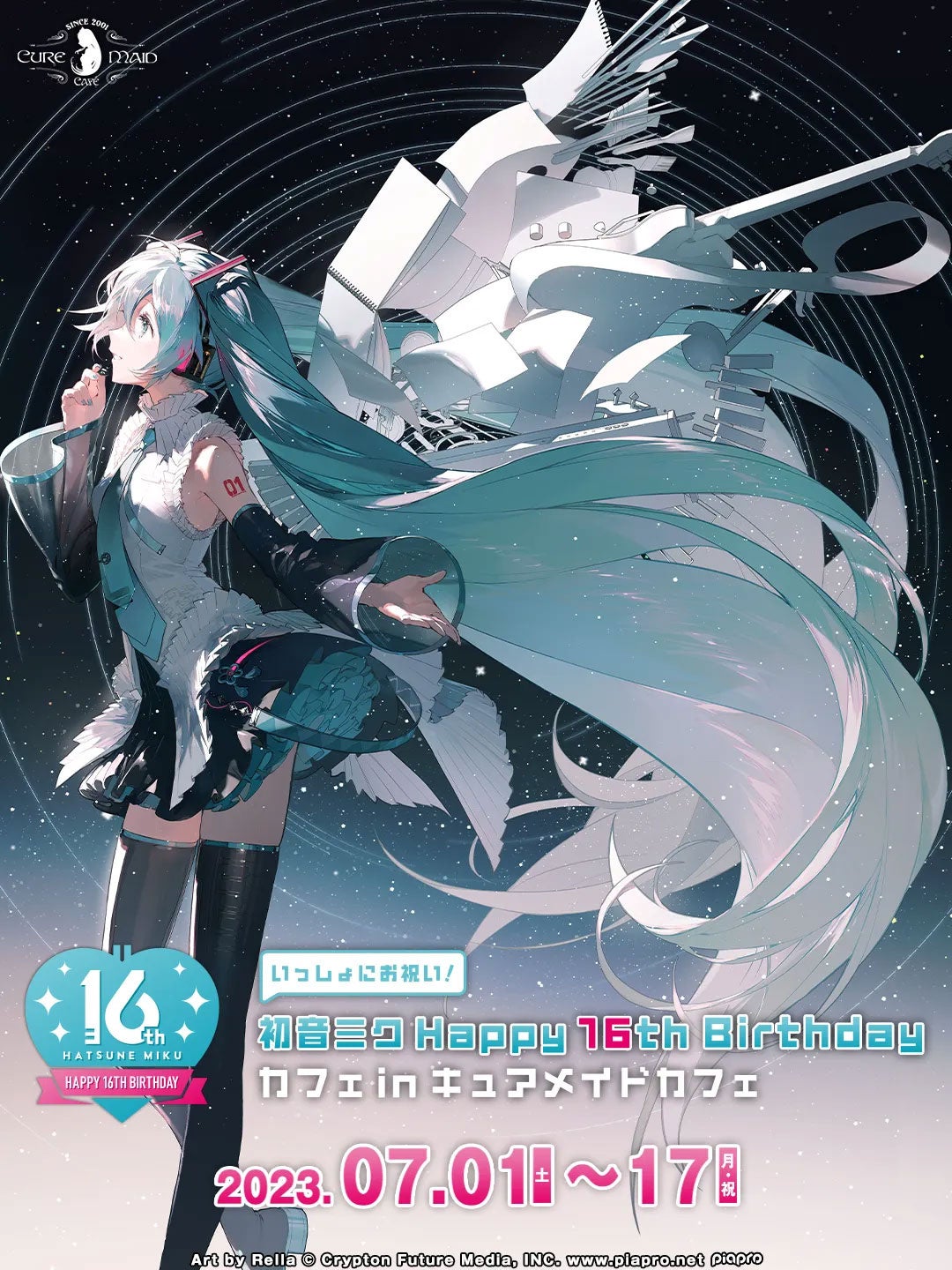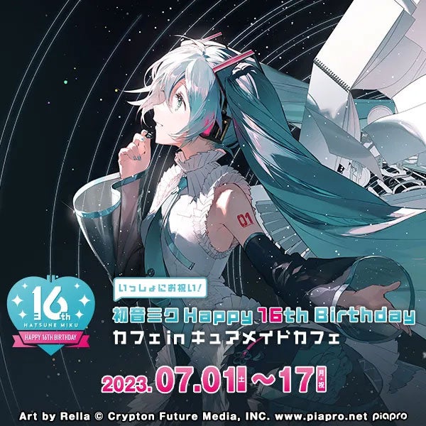 2023年7月1日(土)~7月17日(月・祝)秋葉原のCURE MAID CAFÉ(キュアメイドカフェ)にて、<初音ミク Happy 16th Birthday カフェ in キュアメイドカフェ>の開催が決定しました。