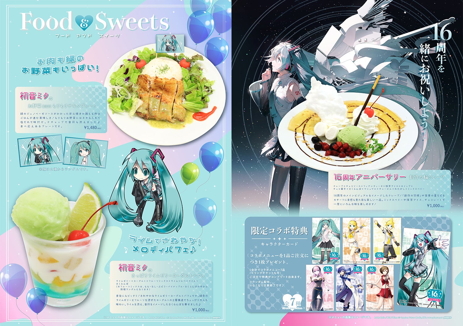 これを記念して7月1日(土)~秋葉原のCURE MAID CAFÉで開催するこのコラボカフェでは、ミクとピアプロキャラクターズのフードやドリンクをご提供。コラボメニューや特典【コラボ限定キャラクターカード(全7種)】、展示、先行販売グッズなど、合わせてお楽しみいただけます。