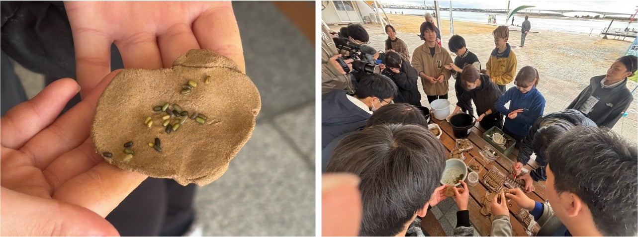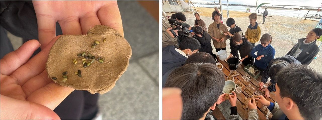・海草アマモの種子を粘土で包み、海底へ投下するための準備作業 ・アマモ再生が期待されるエリアでSUPに乗って1万数千粒を種まき ・浜名湖周辺で放置が問題となっている竹林から切り出した 竹を活用した竹SUPに乗って種まき ・有識者委員会によるアマモ栽培の現状やSUP活用の意義を説明 |