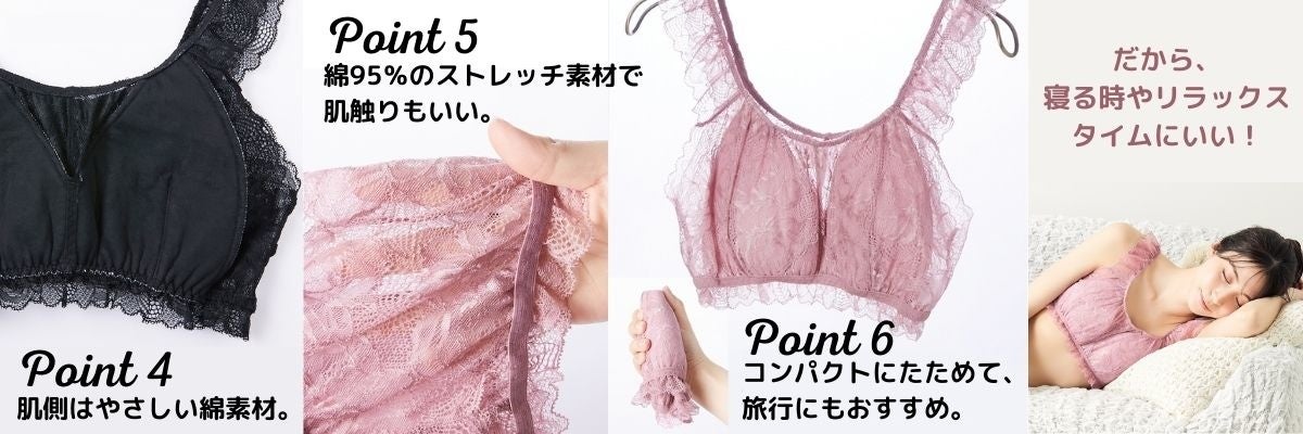 - 「まるでNOブラ 総レースハーフトップブラジャー」 商品特長