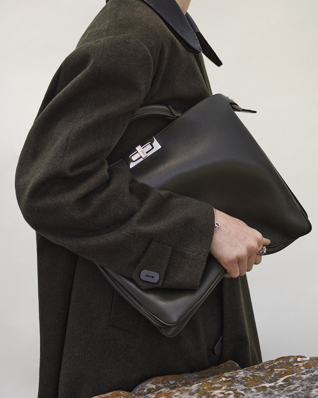 アイコニックなツイストロックやサイドストラップなど「ピーカブー」ファミリーの特徴はそのままに、新しい「ピーカブー ソフト」は控えめな革新を遂げています。 新しい脱構築のシルエットと、驚くほどのしなやかさが、自然なカーブを描く「ピーカブー」スマイルを際立たせています。「ピーカブー」の上品なコンセプトを表からも裏からも、再解釈するこのスマイルが、バッグ内部のスエード製ライニングをエレガントにのぞかせます。自然な美しさとバッグ本来のクラシシズムを引き立てる、温かみのあるスティールグレーやダークグリーンなどの洗練されたタイムレスなカラーパレットが揃い、背面に「FF」ロゴがあしらわれたトーンオントーンの取り外し可能な内ポケットが付いています。