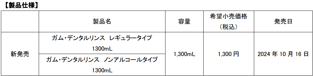 ガム・デンタルリンス、大容量1300mLサイズ新発売 日常の歯周病予防から災害時の備えまで