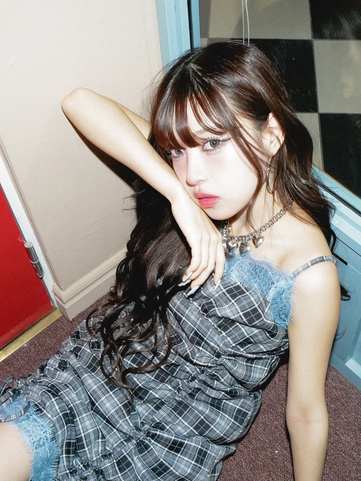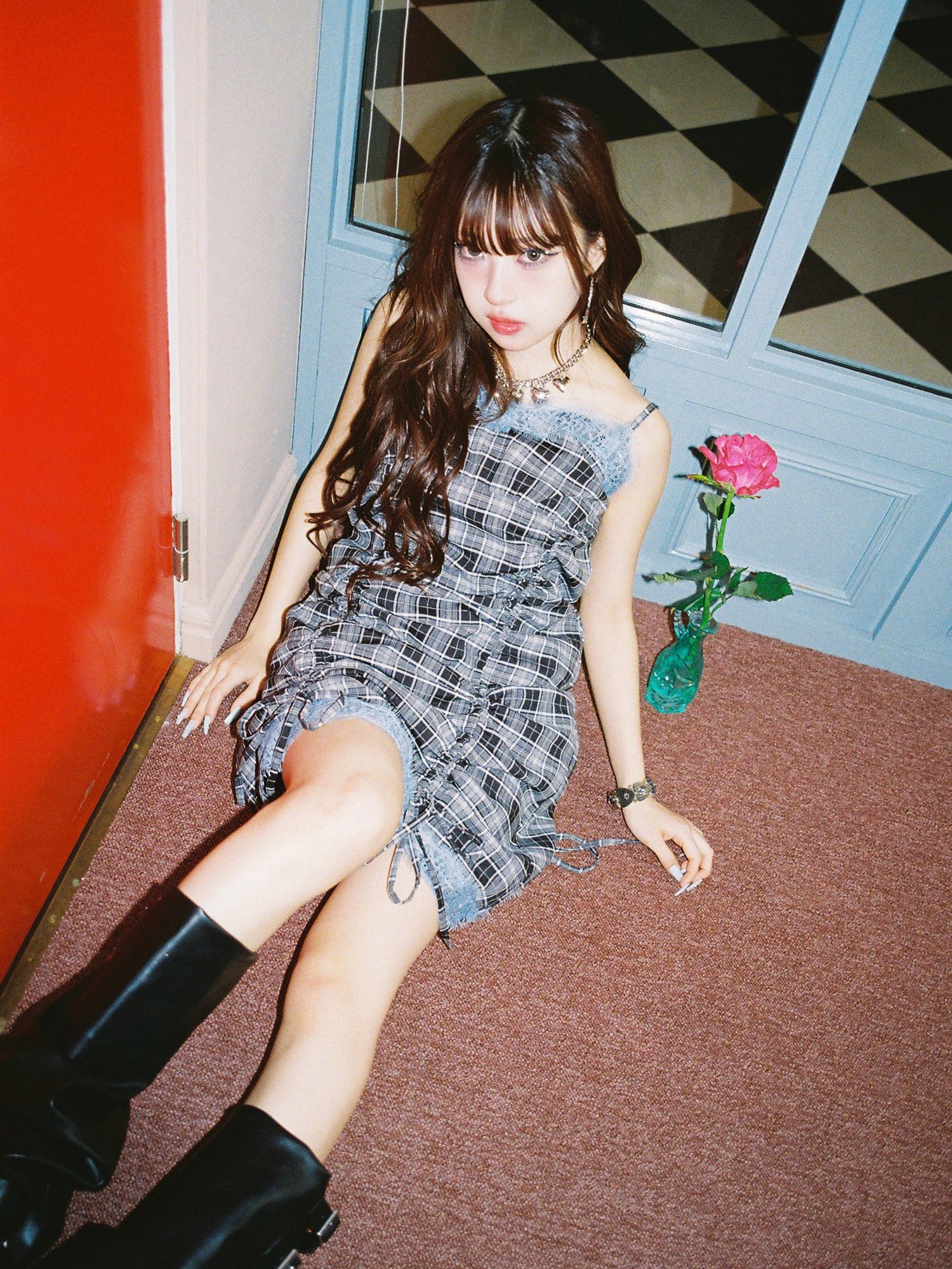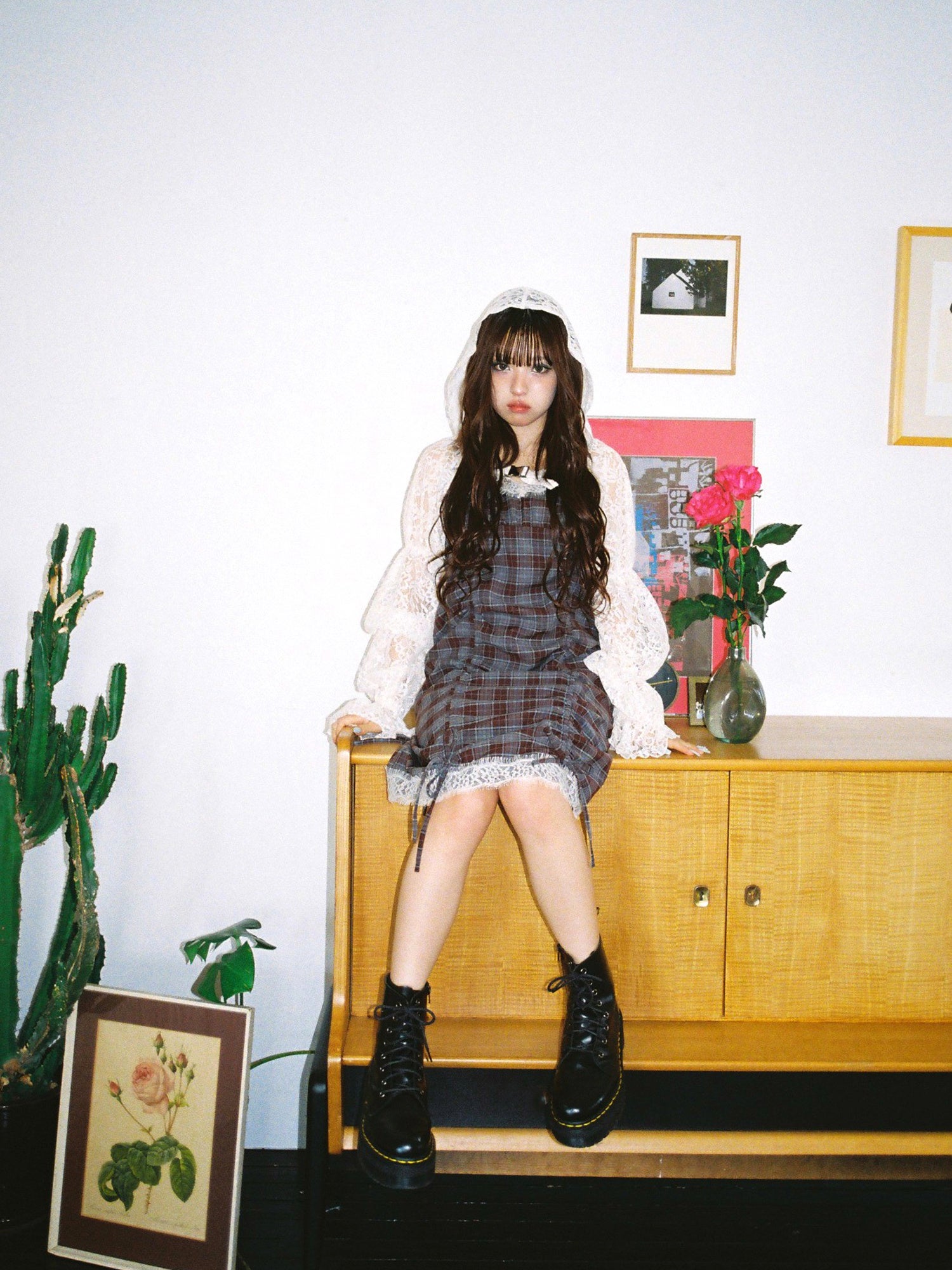 ロマンティックな配色のレースドッキングデザインとチェック柄を組み合わせた、トレンドのMIXスタイルを楽しめるスペシャルなワンピース。