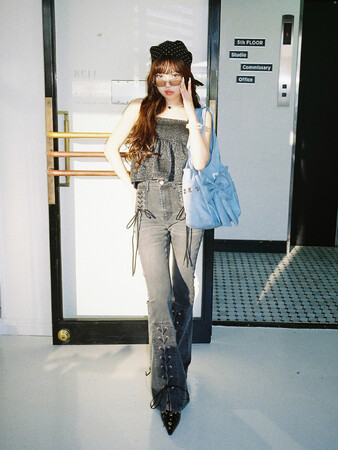 本コラボレーションでは、MINAMIさんこだわりのカラーとトレンド、そしてjouetieの世界観を掛け合わせた全5型を展開。キラキラと煌めくラメスウェットのビスチェ&パンツのセットアップをはじめ、レースボレロ、キャミワンピース、BIGリボンが可愛いトートバッグでMIXスタイリングを提案します。