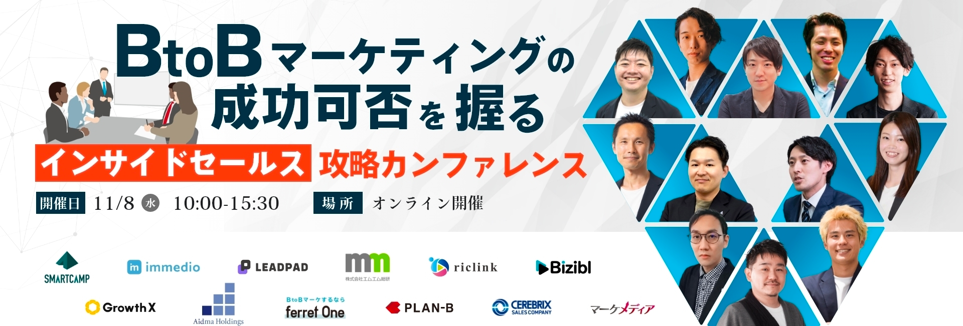 本カンファレンスでは、BtoBマーケティングで成功可否を握るインサイドセールスを含むマーケティング・営業支援会社の12社と共に、最新のトレンドをご紹介させていただきます。「事業成長を加速させたい」「受注率/受注単価を上げたい」「アポ/リード獲得を最大化したい」方は是非お申し込みくださいませ。