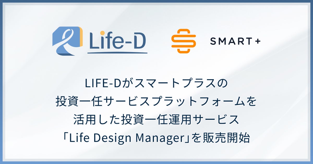 次世代金融インフラの提供を通して組込型金融を実現するFinatextグループの株式会社スマートプラス(本社:東京都千代田区、代表取締役:小林 紀子、以下「当社」)は、株式会社LIFE-D(本社:東京都千代田区、代表取締役:日向絵理香、以下「LIFE-D」)が、当社の投資一任サービスプラットフォームであるDigital Wealth Manager (デジタル・ウェルス・マネージャー、以下「DWM」)を活用した投資一任運用サービスを「Life Design Manager」として仲介を開始したことをお知らせいたします。