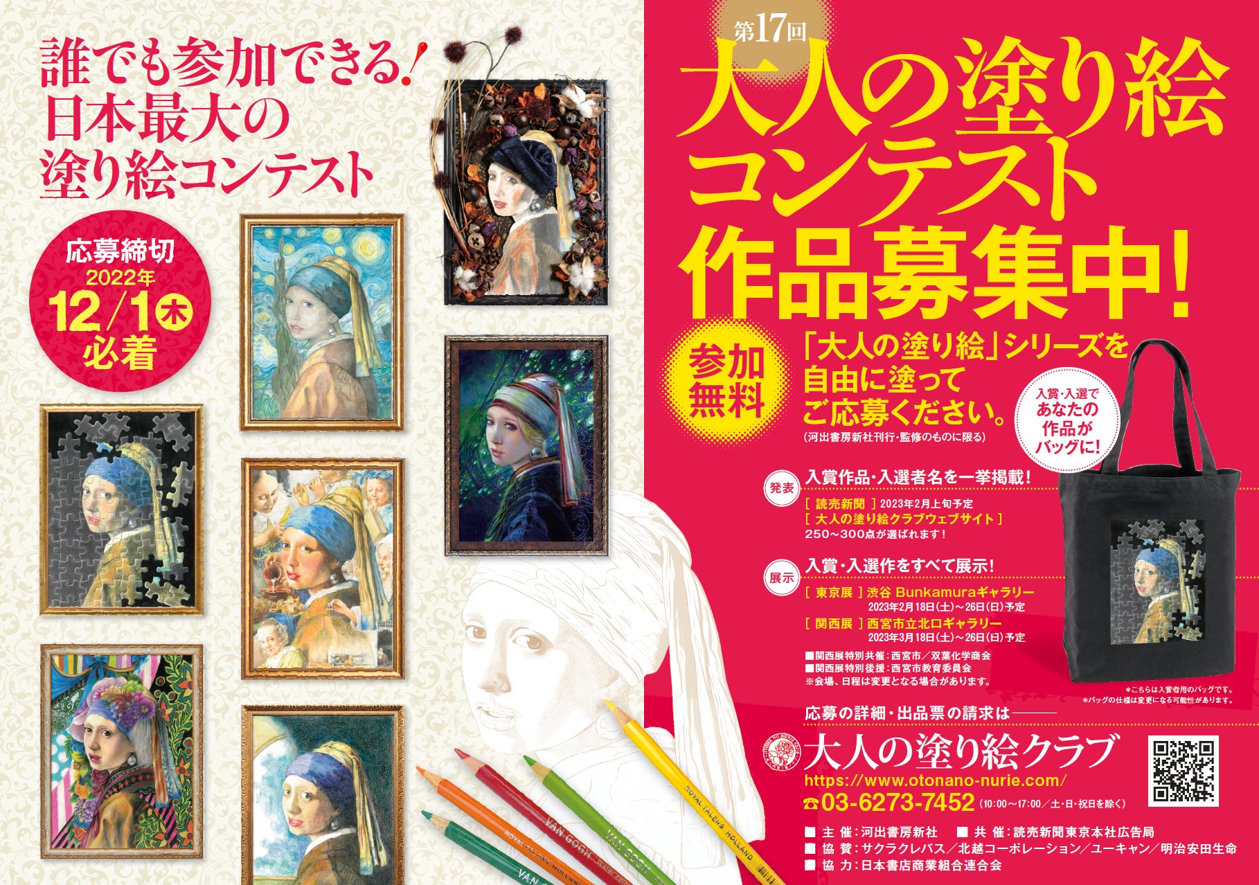 入賞・入選は2023年2月に読売新聞紙上、大人の塗り絵クラブ公式サイトにて掲載予定。