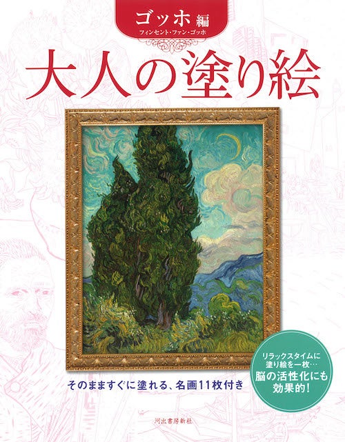 「ひまわり」「星月夜」「糸杉」「夜のカフェテラス」「アルルの寝室」などゴッホの代表的な作品が塗り絵になりました。