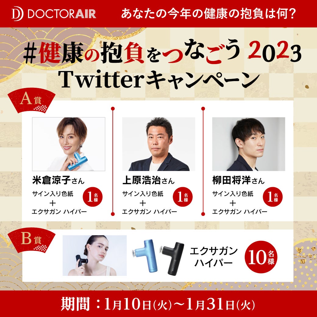 全国約4,000店で取り扱われているトータルボディケアブランド『ドクターエア』の公式Twitterにて<#健康の抱負をつなごう2023Twitterキャンペーン>を、2023年1月10日(火)~ 2023年1月31日(火)の期間に実施いたします。今回のキャンペーンでは、『ドクターエア』のブランドアンバサダー・スペシャルアドバイザーの直筆サイン入り色紙などを抽選でプレゼントいたします。