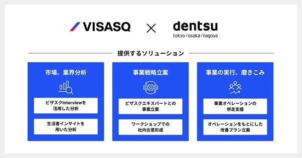 「知見と、挑戦をつなぐ」をミッションにグローバルなナレッジプラットフォームを運営する株式会社ビザスク(以下、当社)は、株式会社電通(以下、電通)と事業開発コンサルティングにおいて協業を開始し、両社の強みを掛け合わせた新たなソリューションの提供を開始いたします。