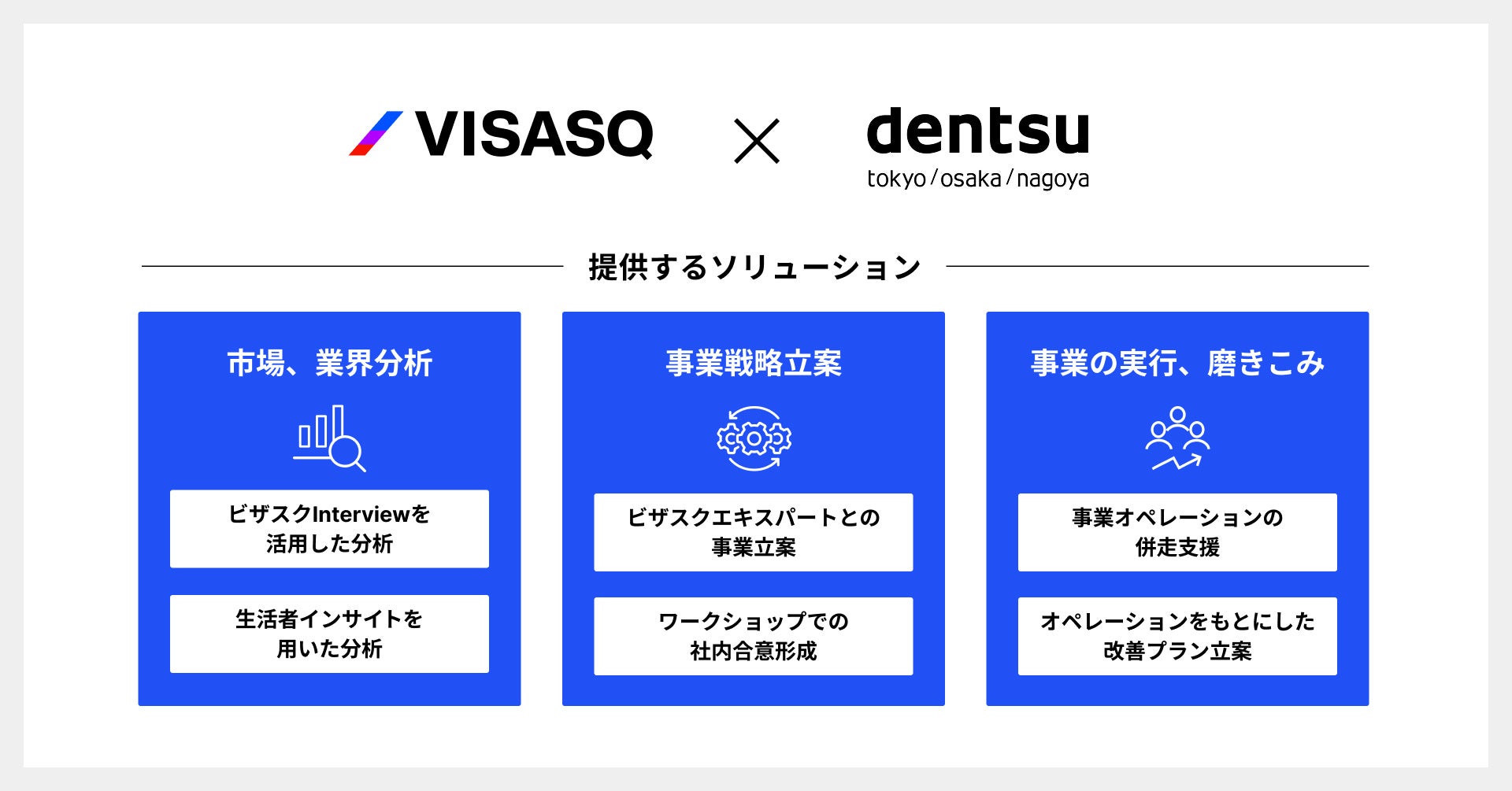 電通のアセットとビザスクの多様な知見を掛け合わせた独自のソリューションメニューを提供