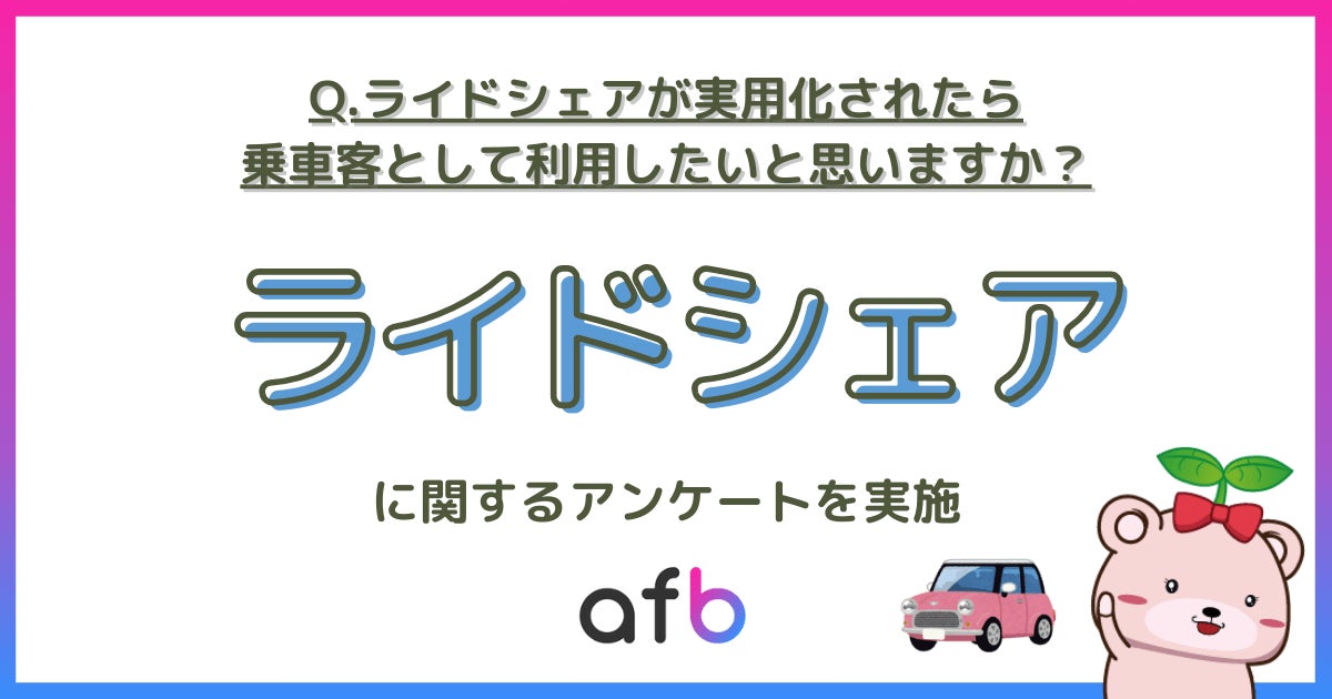 ライドシェアは“高所得者ほど前向き”?性別・年収・ライフステージ別に意向を調査!