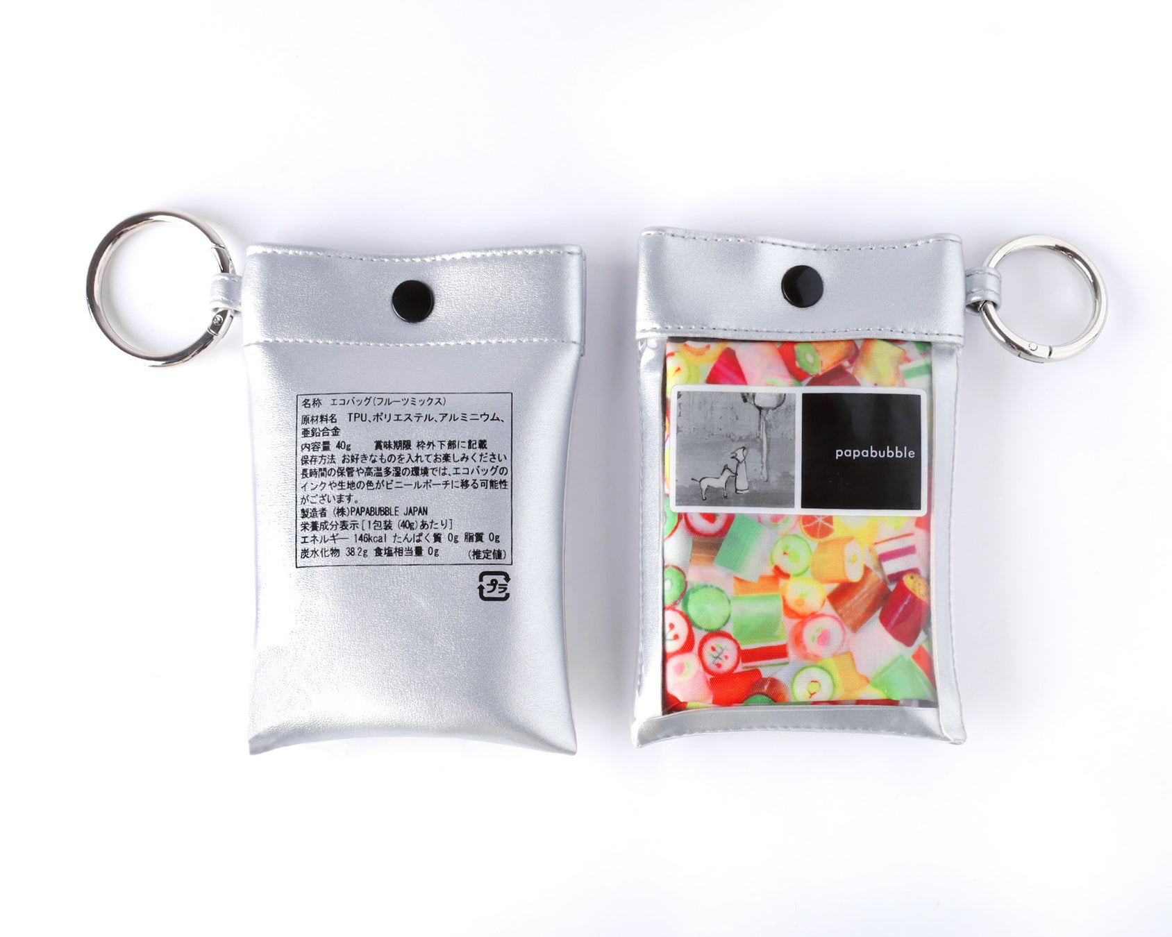 エコバッグ本体は、色とりどりのフルーツキャンディを全面にあしらったデザインで、遠目にも目を引き、ファッションのアクセントとしてもお楽しみいただけます。また、収納ポーチは実際のキャンディBAGを再現した透明窓付きデザインで、裏面のディテールにもこだわりました。エコバッグだけでなく、スマートフォンや文房具などの小物収納にも活躍します。