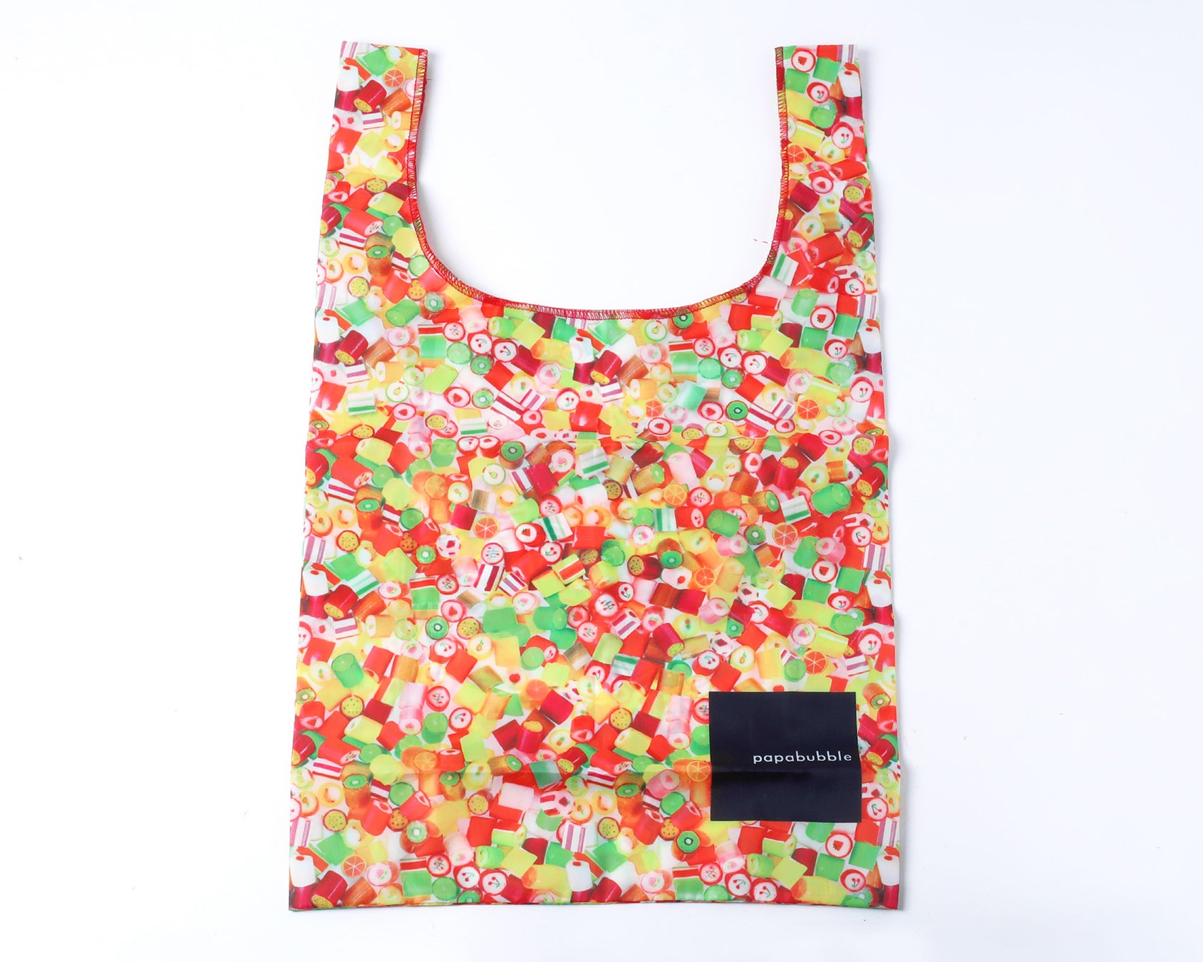 「フルーツミックス」をモチーフにした華やかなキャンディ柄のエコバッグを、実際のキャンディBAGとほぼ同サイズの専用ポーチに収納。実用性とデザイン性を兼ね備えた、毎日使いたくなるアイテムです。