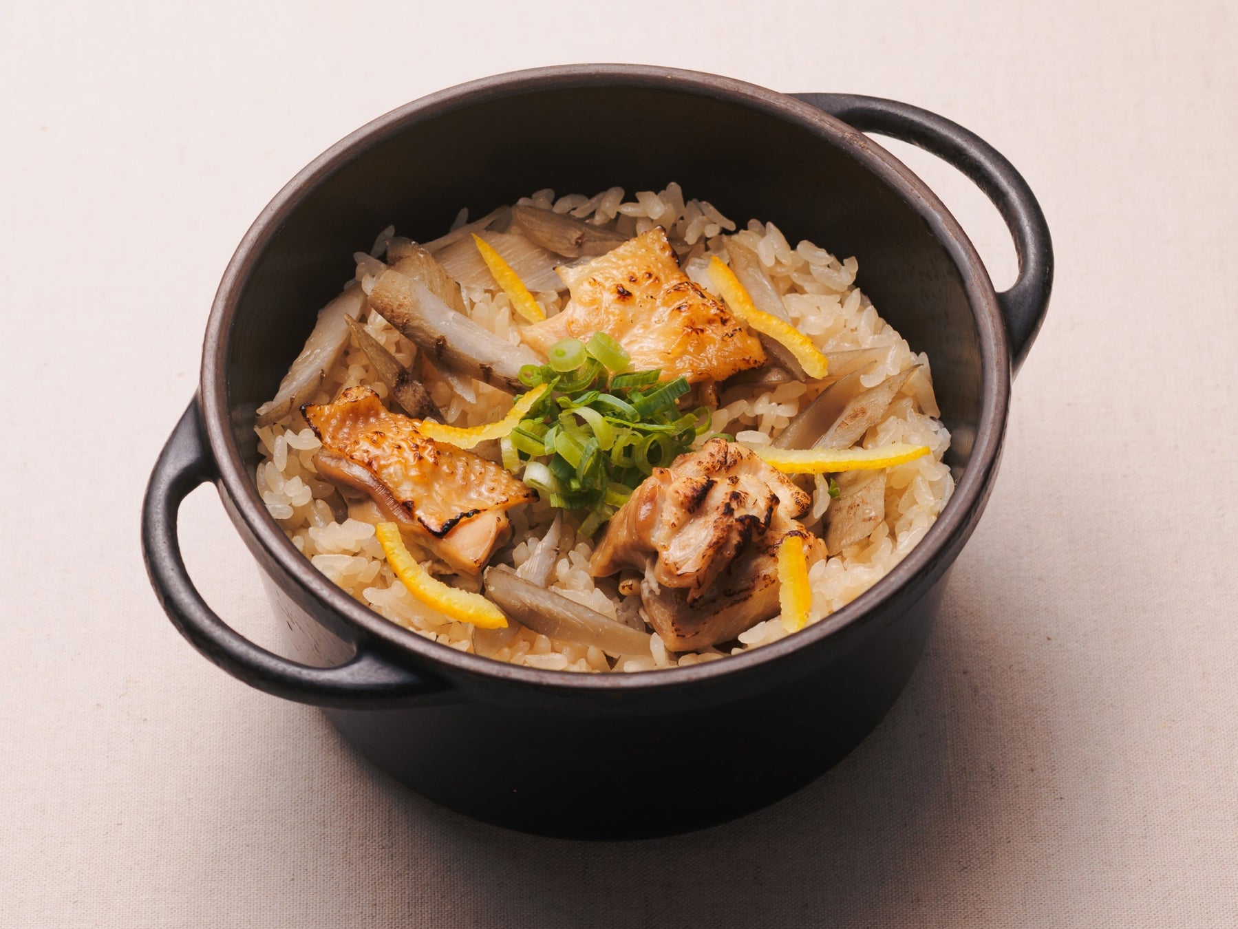 焼いて香ばしく仕上げた鶏肉とごぼうの香り、本枯鰹節だしのうま味を味わえる炊き込みご飯に仕上げました。柚子の香りを加えることで、季節感を感じていただける一品です。
