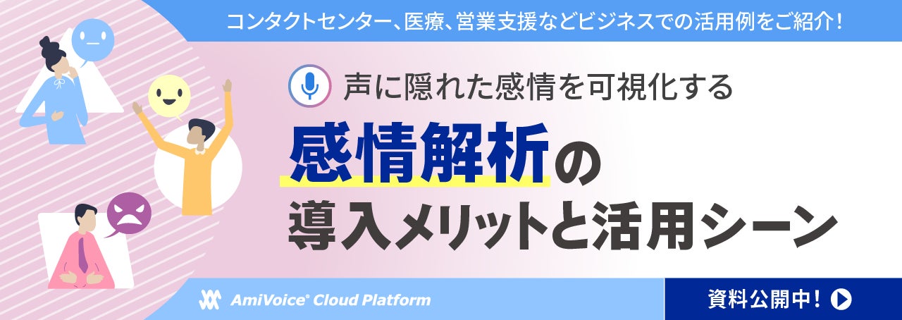 株式会社アドバンスト・メディア(本社:東京都豊島区、代表取締役会長兼社長:鈴木 清幸 以下、アドバンスト・メディア)は音声関連技術を提供するボイステックプラットフォーム「AmiVoice Cloud Platform」にて、「感情解析の導入メリットと活用シーン」のサービス資料を公開しました。