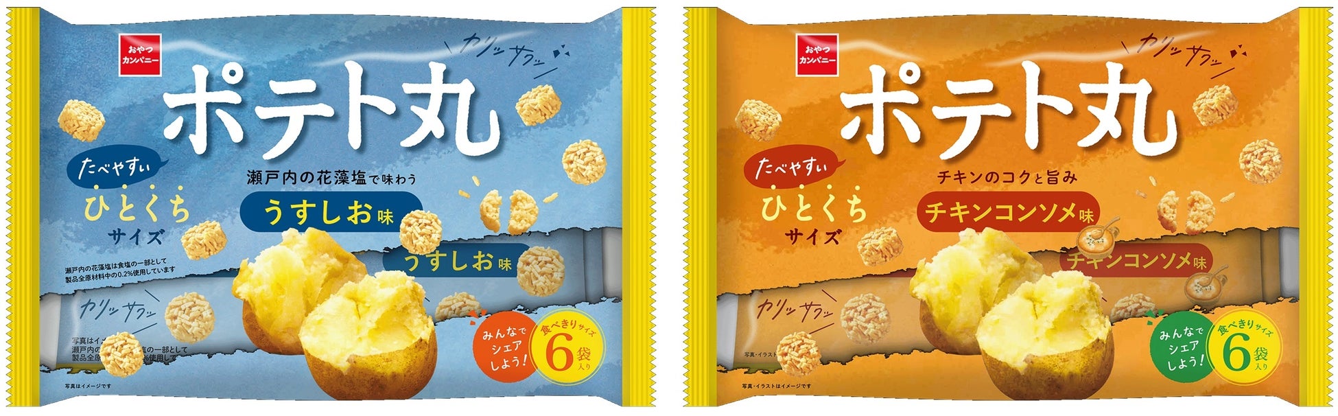 そこで2019年の発売以来、お子様でも食べやすいひとくちサイズのポテトスナック菓子として親しまれてきた『ポテト丸』が大人のリフレッシュタイムにも合う味わいとパッケージにリニューアルします。