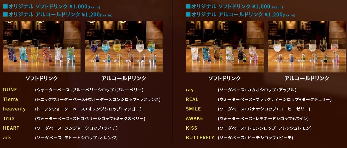 ※オリジナルアルコールドリンクはオリジナルソフトドリンクの内容にウォッカを追加したものをワイングラスで提供いたします。