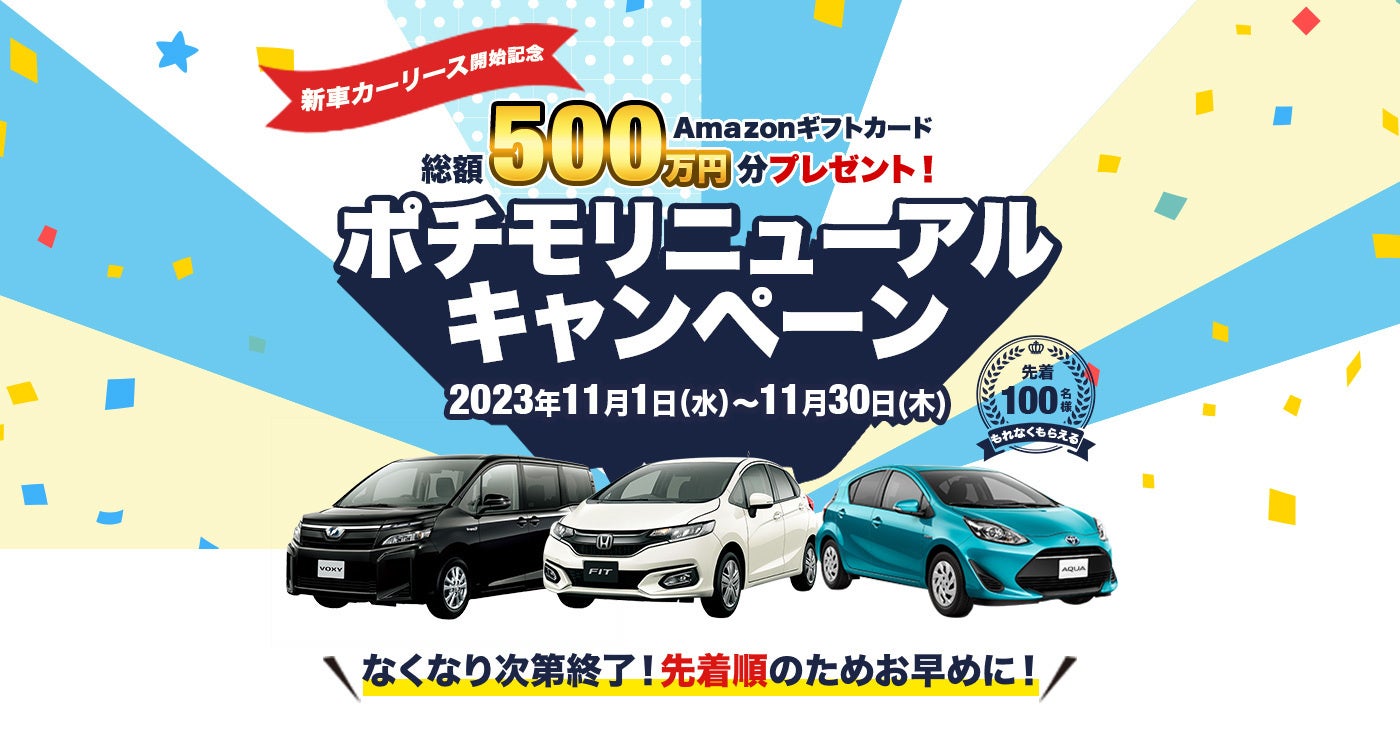 日本最大級の中古車リースサービス「ポチモ」の新車リース導入を記念し、「ポチモリニューアルキャンペーン」を実施