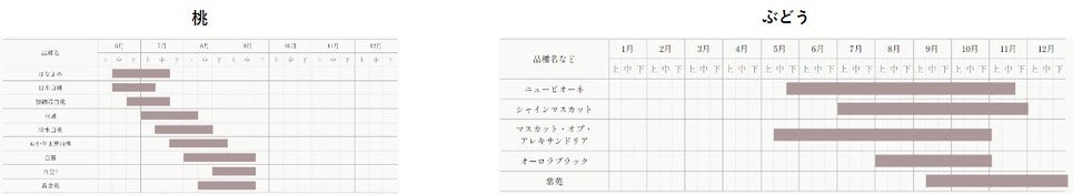 岡山県を代表する2大フルーツである桃とぶどう。品種によって異なりますが、桃は6月~9月、ぶどうは5月~12月が出荷時期となります。お互いの出荷が被るこれからの季節、岡山県のフルーツが最大のピークを迎えます。