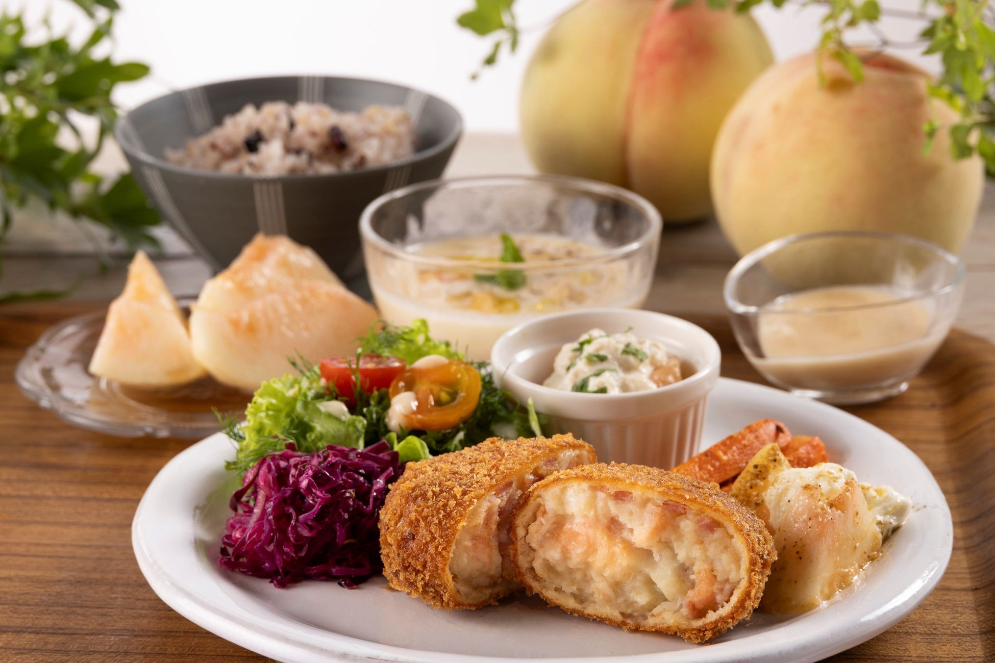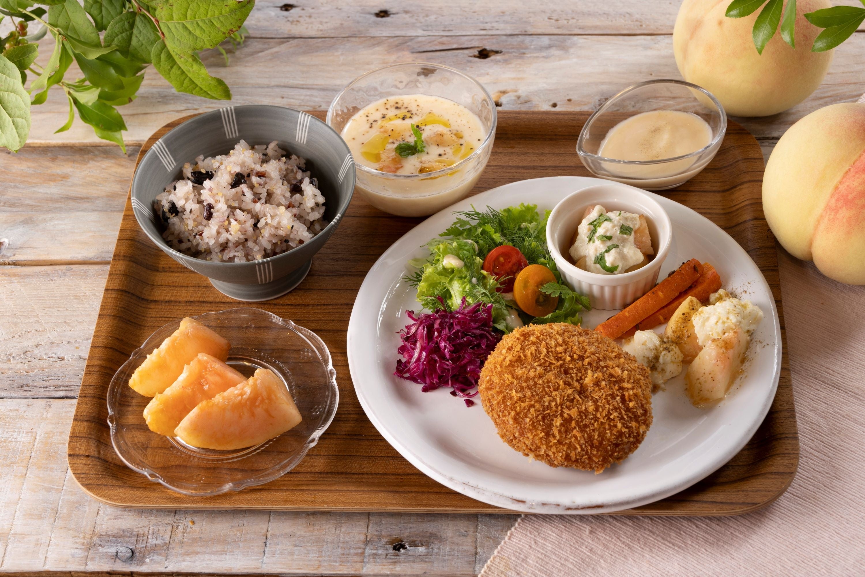 「白桃」と「ぶどう」が主菜・副菜・スープ・デザートに!新境地のフルーツ定食