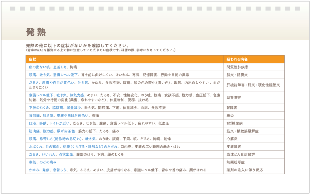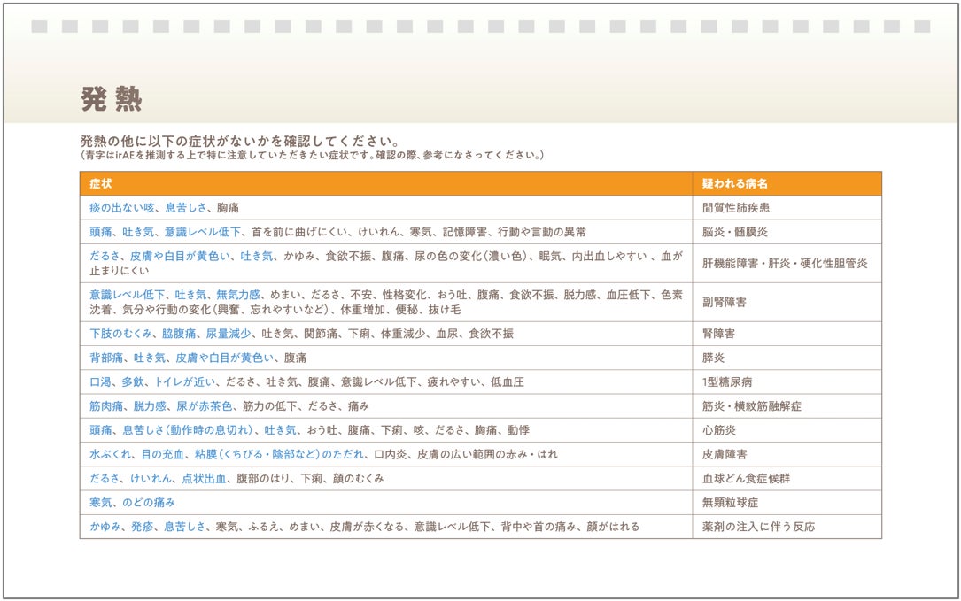 ・逆引きマニュアル:確認した症状から逆引きマニュアルを基に、どのようなimAEが発現しているか推測できる