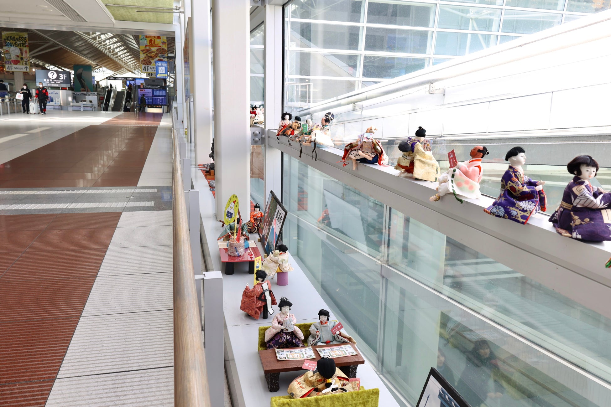 空港館内に約450体の雛人形を展示中です。2014年以来、11回目の開催となります。