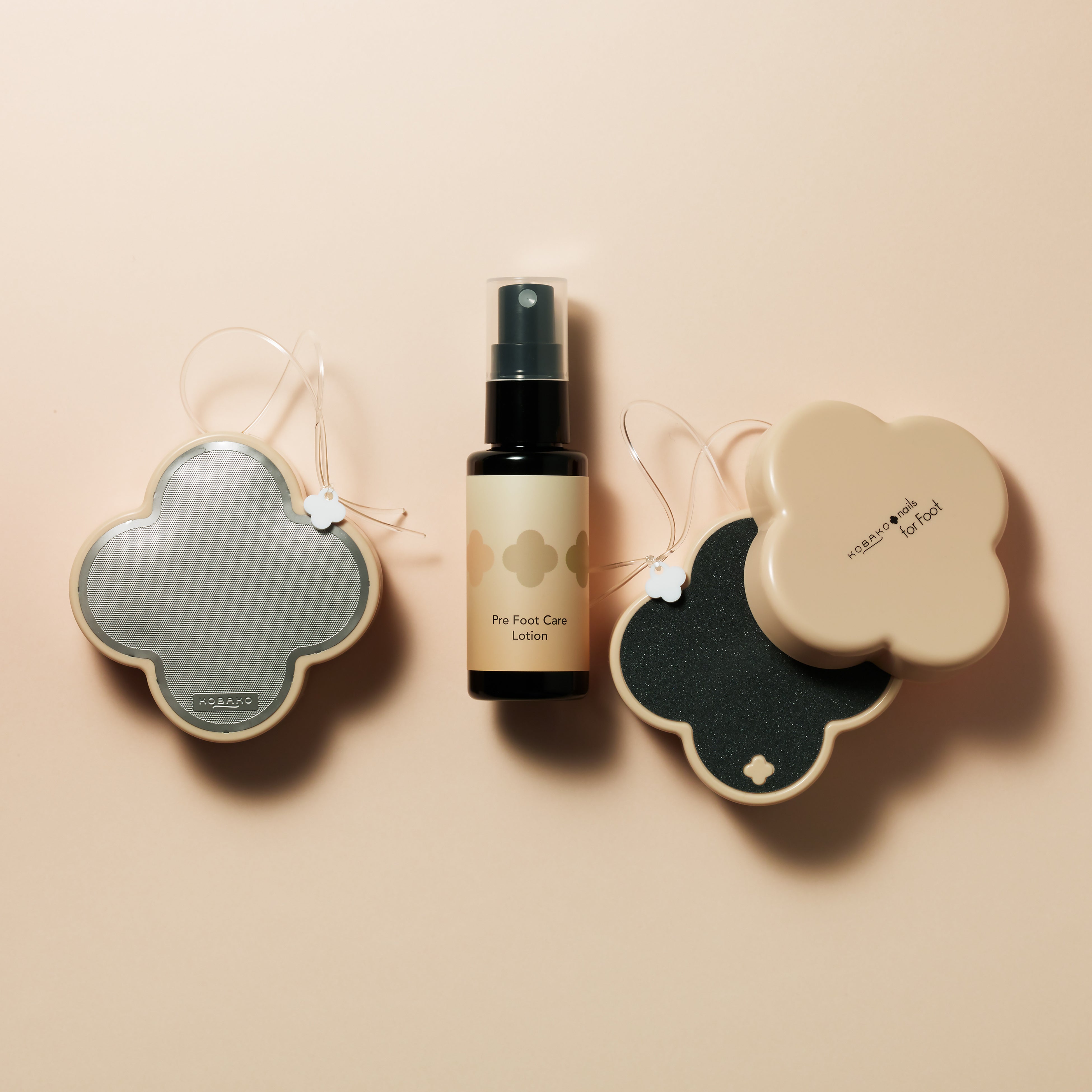 ビューティーツールブランド〈KOBAKO〉「フットケアキット2(コンフォートベージュ)」「フットスムーサー(コンフォートベージュ)」「プレフットケアローション(コンフォートドロップ)」