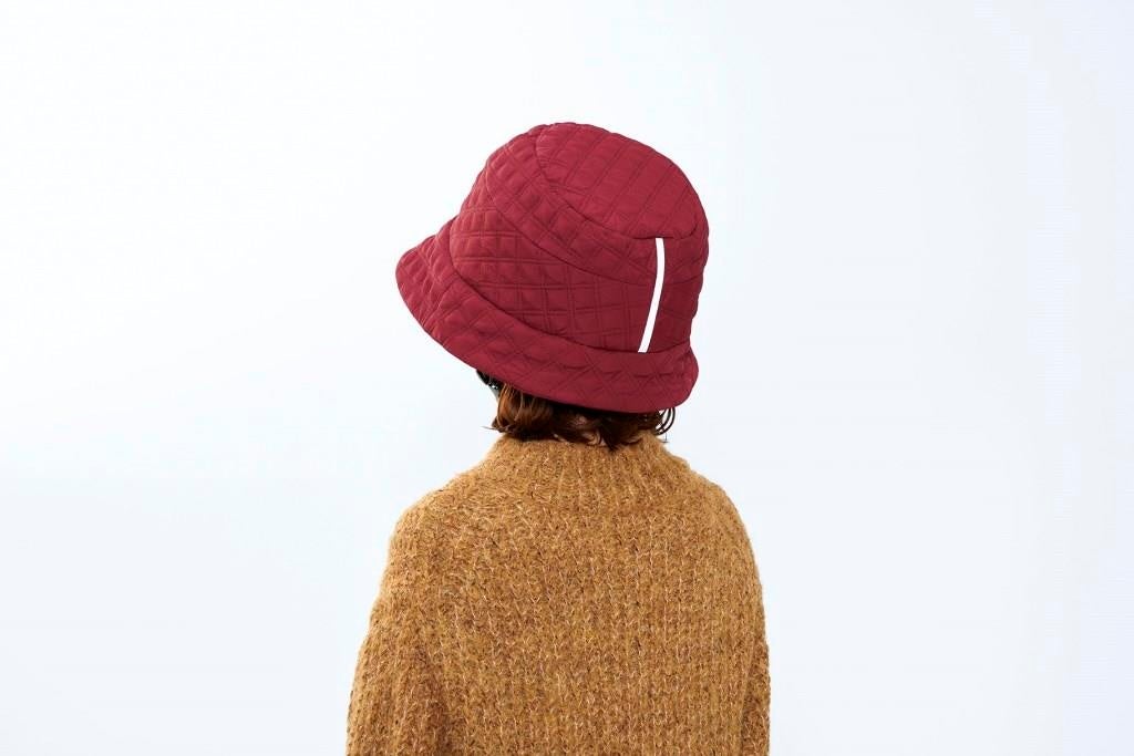 コンパクトなシルエットですっきり見えるキルティングハット。背面リフレクターで安全面も確保。