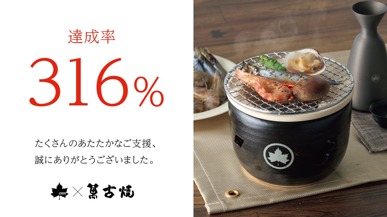 日本の伝統産業である「萬古焼」とLOGOSのコラボレーションにより誕生した、機能性とデザイン性に優れた炭火コンロ「LOGOS×萬古焼 卓上水コンロ」を、アタラシイものや体験の応援サービス「Makuake」にて先行販売したところ、開始2日で目標金額の50万円を達成いたしました。目標金額を達成後も多くの方々からご支援をいただき、終了日の7月15日(金)には達成率316%まで到達することができました。