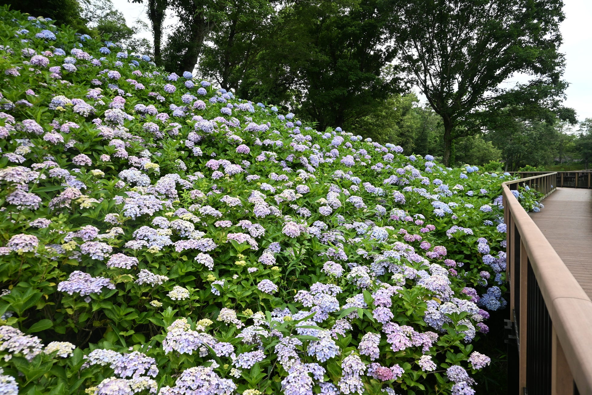 立つ場所によってさまざまに表情を変えるあじさい苑をお楽しみ下さい。