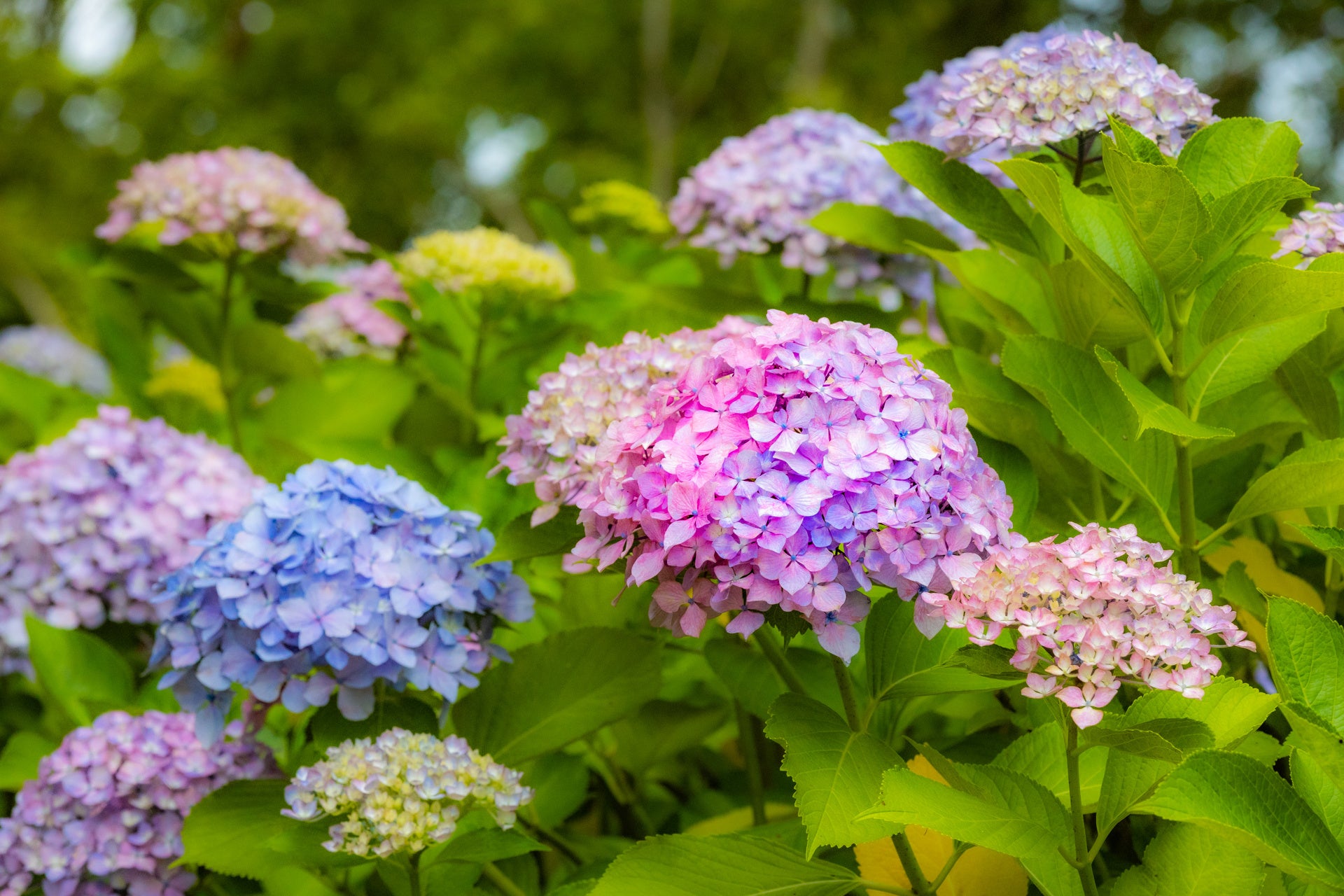 あじさいを代表するてまり咲きから豪華な八重咲きの品種、ガクアジサイをはじめとした野趣あふれる系統まで、そのバリエーションの豊かさにきっと驚くはず。