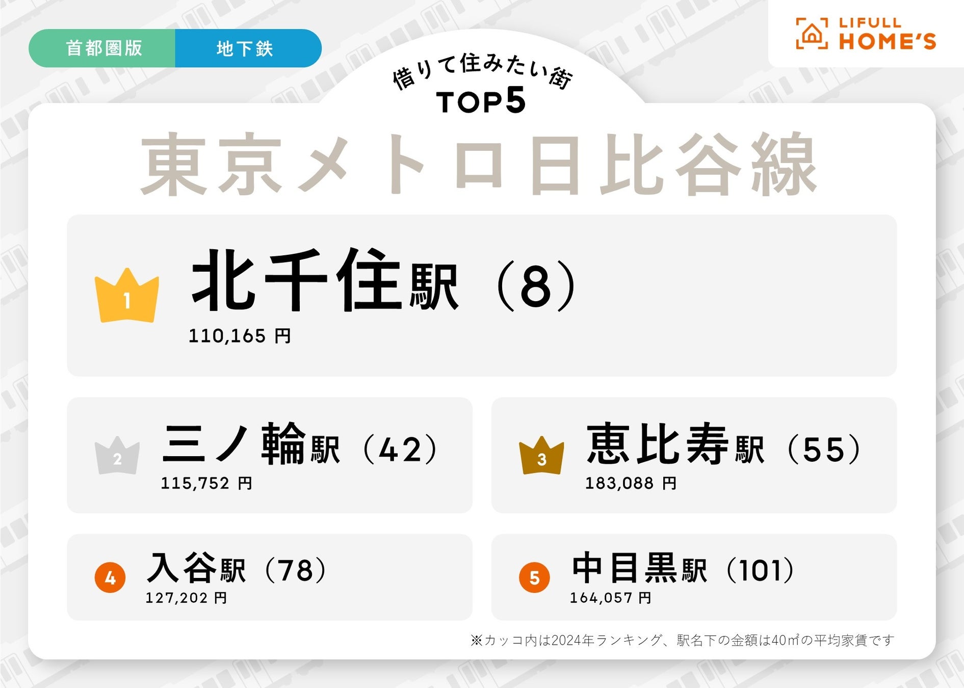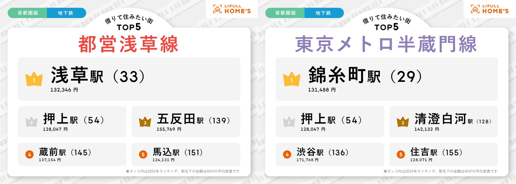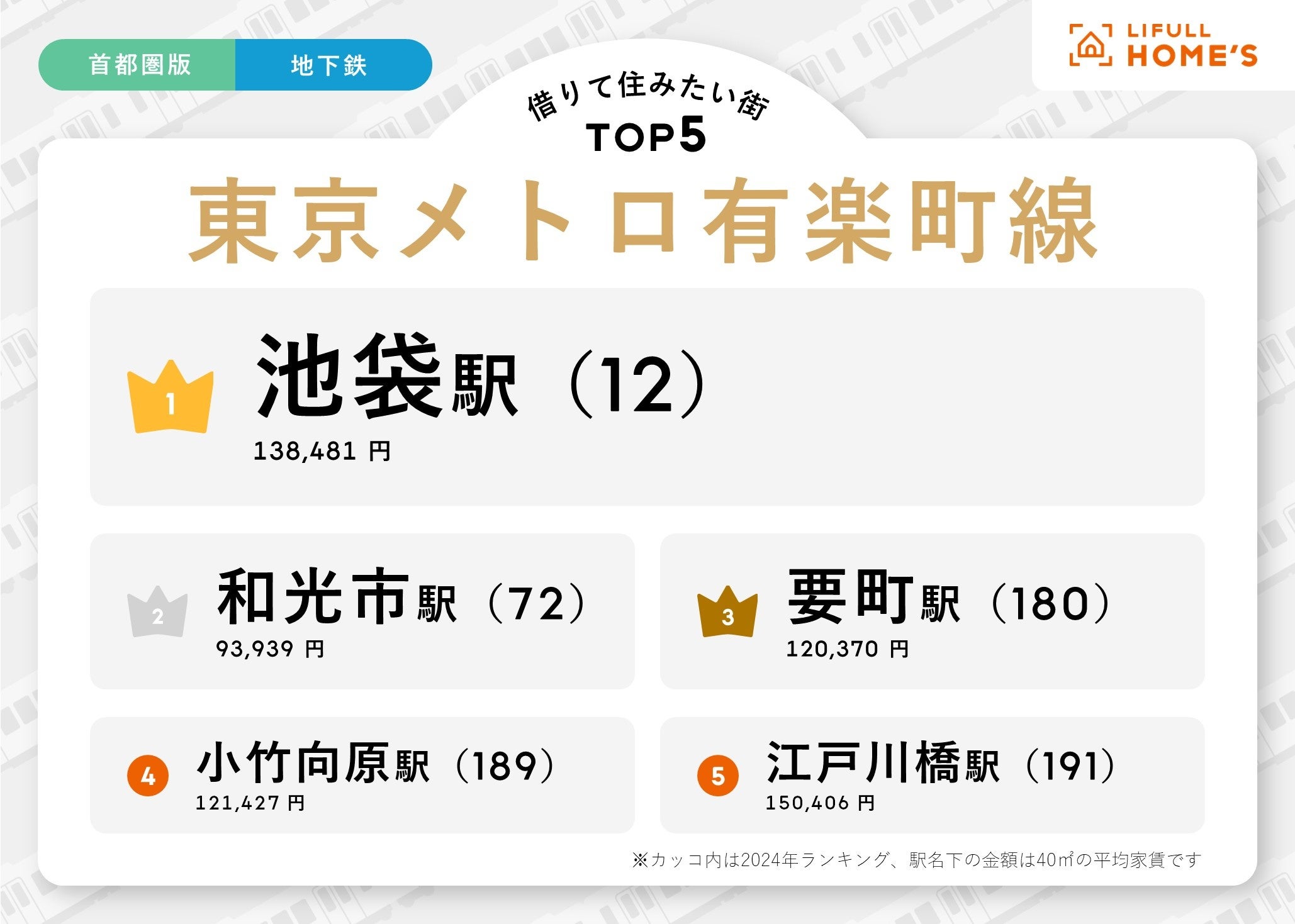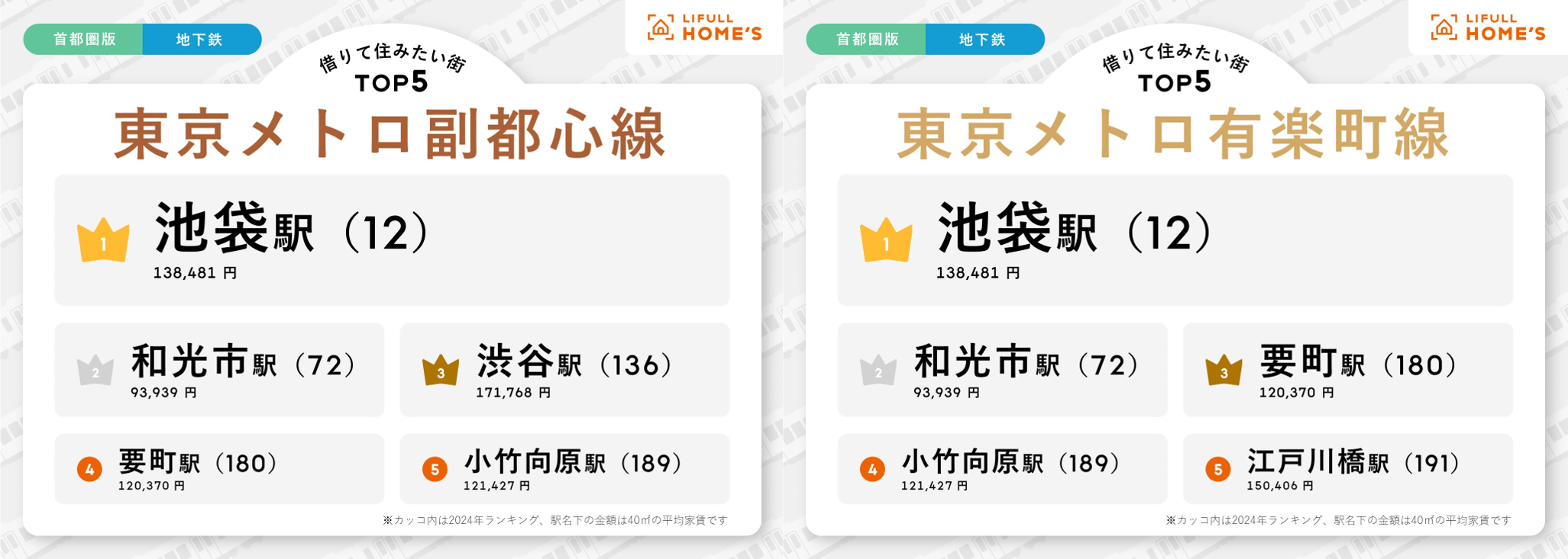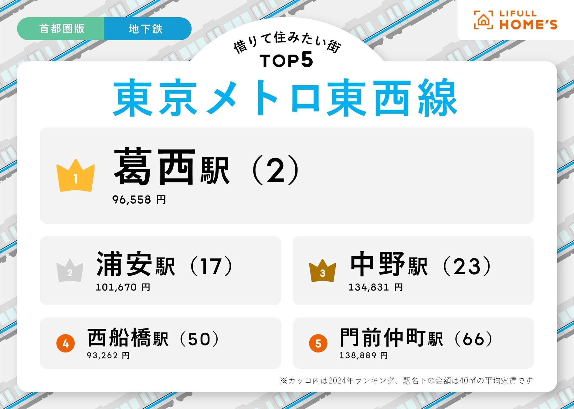 首都圏の地下鉄で「住みたい街が多い路線」は「東京メトロ東西線」2024年LIFULL HOME'Sみんなが探した!借りて住みたい街ランキング