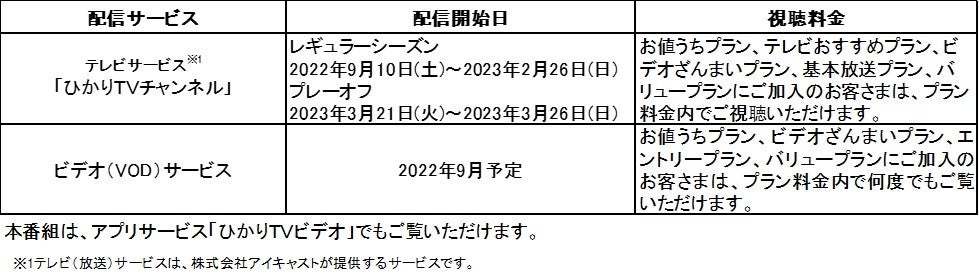 ※1 ひかりTVでは試合翌日以降にビデオサービス(VOD)見放題対象作品としても提供します