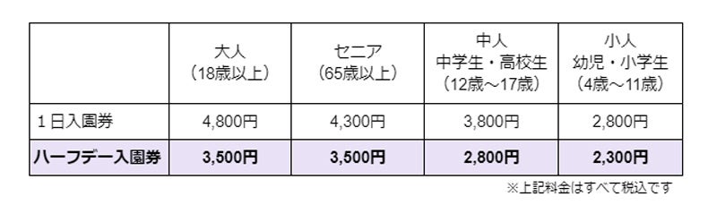 - 夜間特別営業日限定「ハーフデー入園券」のご案内
