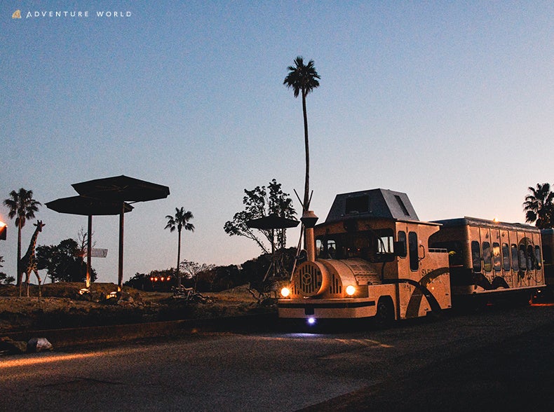 夕暮れのサファリワールドを列車タイプの専用車「ケニア号」で巡ります。日中とは違う草食動物、肉食動物たちの魅力発見の旅へ出かけよう!