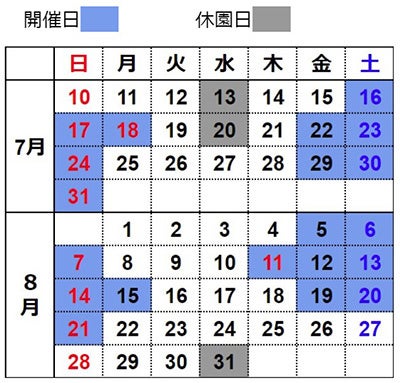 7月16日㈯、17日㈰、18日㈪、23日㈯、24日㈰、30日㈯、31日㈰