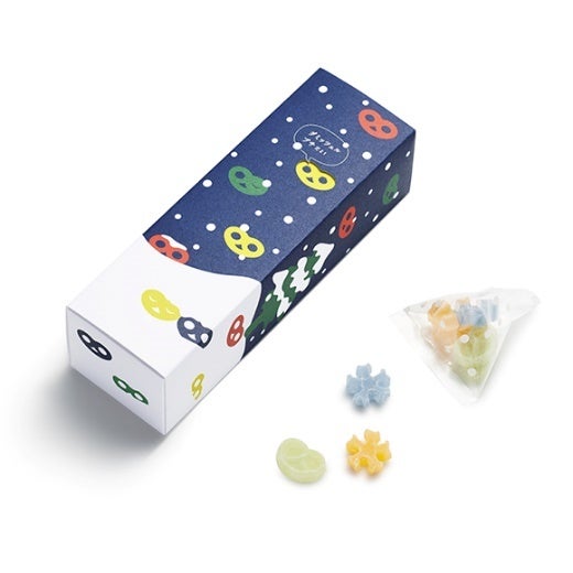 グミッツェルプチが大入りサイズで楽しめるオンラインショップ限定の大人気商品「グミッツェルプチ パーティBOX」がクリスマス限定デザインで登場。雪の結晶型のソーダ味、オレンジ味と、ミニプレッツェル型のラフランス味の3種類がテトラ型小袋に入った可愛いデザインの化粧箱仕様となっており、家族や友人とのパーティなどイベント時のお配りギフトとしてもぴったりです。