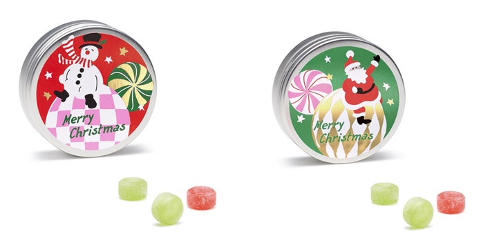 小さな可愛らしい缶に入った、クリスマス限定の小粒キャンディです。キウイ味とアップル味の2種アソートで、レッドとグリーンのクリスマスカラーになっています。小物入れなどとしてアフターユースしたくなる季節感たっぷりのデザインです。