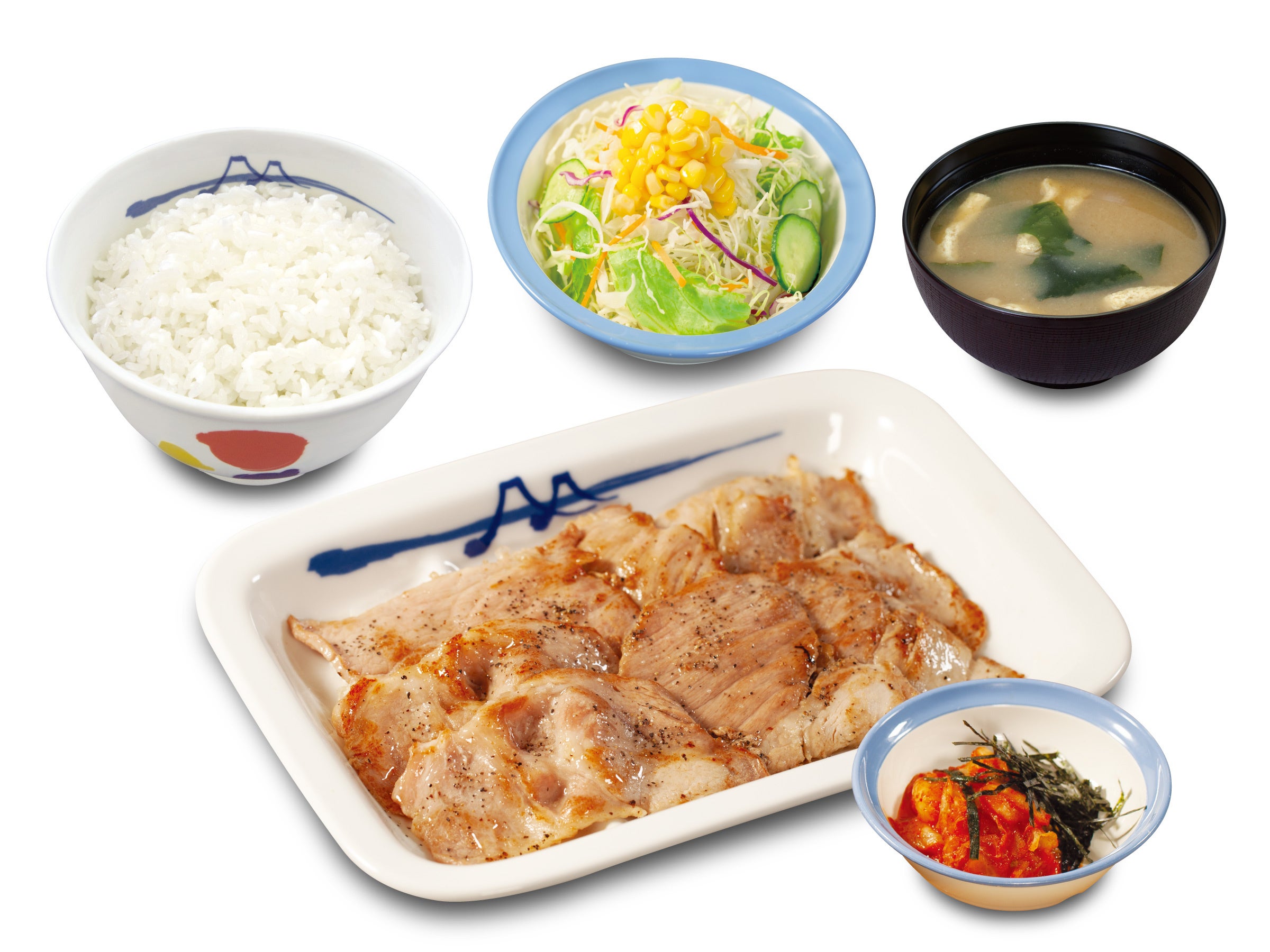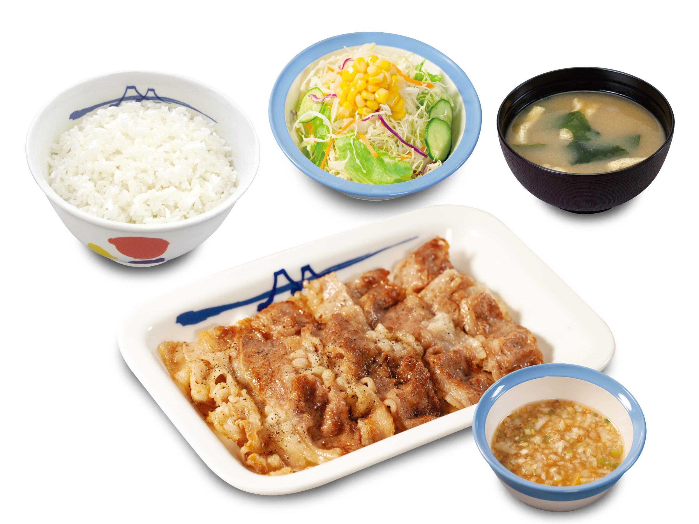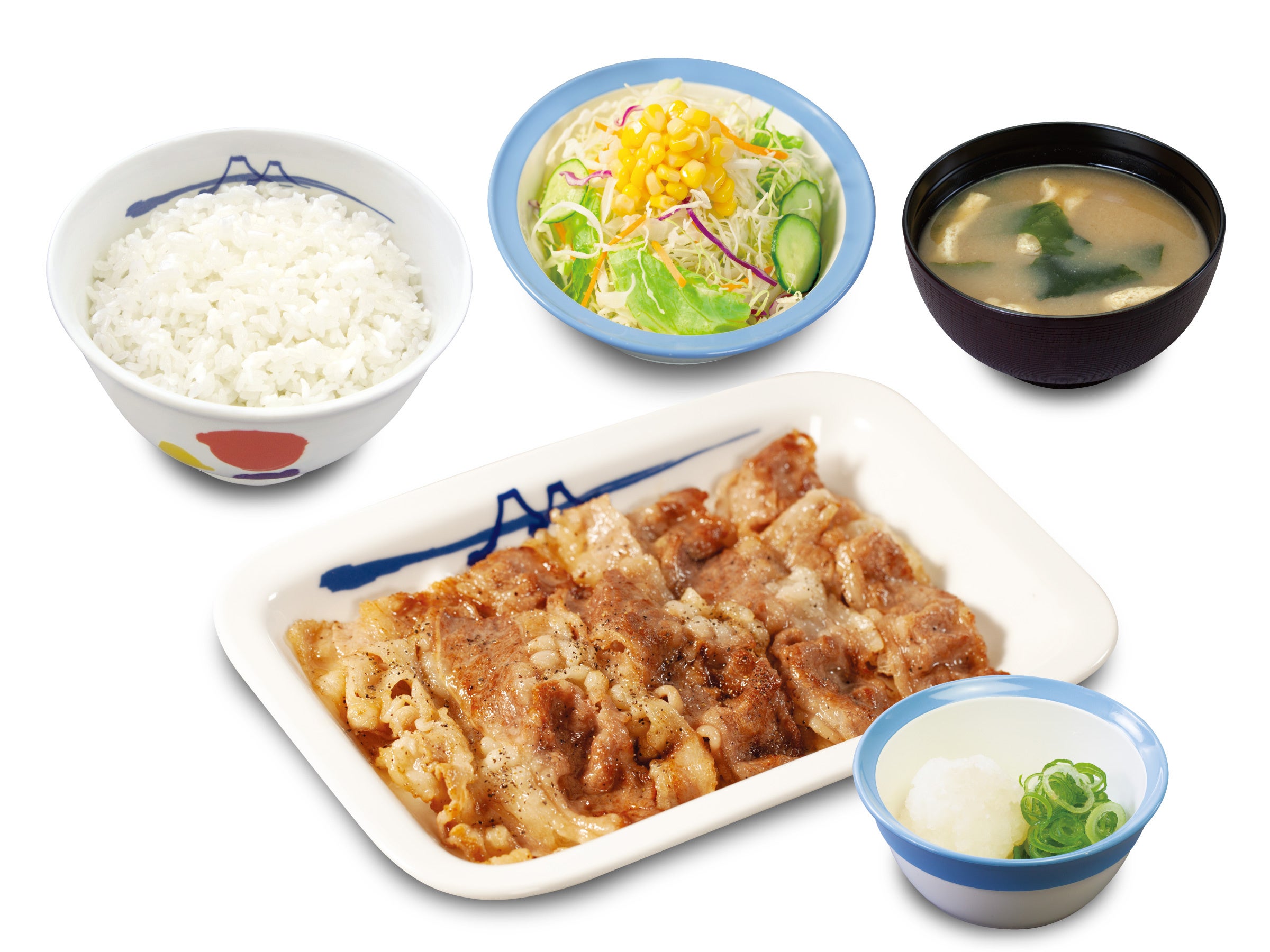 | 商品名 ☆牛焼肉定食 【2/14午後3時 ~ 2/21午後3時:お試し価格販売時】 牛焼肉定食(プレーン)※大根おろし抜き、青ネギ抜き 690円 → 590円 鬼おろし牛焼肉定食 780円 → 680円 のりキム牛焼肉定食 780円 → 680円 ネギダレ牛焼肉定食 780円 → 680円 【2/21午後3時~:お試し価格終了後】 牛焼肉定食(プレーン)※大根おろし抜き、青ネギ抜き 690円 鬼おろし牛焼肉定食 780円 のりキム牛焼肉定食 780円 ネギダレ牛焼肉定食 780円 ☆豚焼肉定食 ※2/14午後3時~販売価格 豚焼肉定食(プレーン)※大根おろし抜き、青ネギ抜き 650円 鬼おろし豚焼肉定食 740円 のりキム豚焼肉定食 740円 ネギダレ豚焼肉定食 740円 ※お持ち帰りいただけます。お持ち帰りにみそ汁は付きません。 お持ち帰りの場合、みそ汁は別途60円でお求めいただけます。 ※税込み価格です。 ※現在販売中の牛焼肉定食、豚焼肉定食、豚生姜定食は、2/14(火)午後3時をもって販売終了致します。 ※2/14(火)午後3時新発売の牛焼肉定食4種は、2/21(火)午後3時より通常価格での販売となります。 発売日 2023年2月14日(火)午後3時 ~ 対象店舗 一部店舗を除く全国の松屋 |